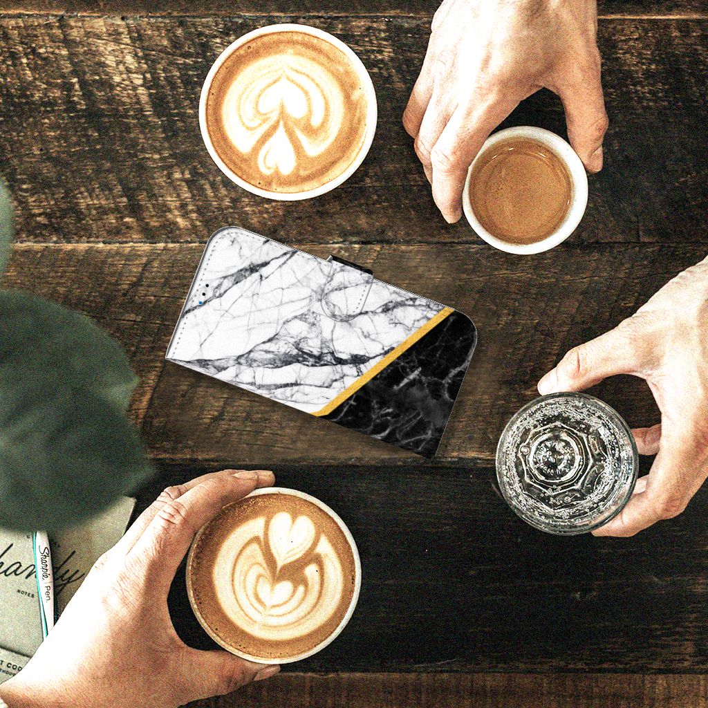 Marmer is een klassiek materiaal en dus ideaal voor een design hoesje als deze, maar zoals je al ziet biedt dit iPhone 14 Pro Max hoesje meer dan een simpel marmer design. Deze Bookcase heeft een zwart en wit marmer patroon met een gouden scheidingslijn. Hierdoor ziet dit design hoesje er niet alleen luxe, maar ook erg artistiek uit. Het betreft een simpel, maar interessant design. Van een design hoesje verwacht je natuurlijk ook dat jouw telefoon er goed in beschermd is en dat is bij deze bookcase zeker het geval. De houder aan de binnenkant is gemaakt van TPU en de buitenkant van kunstleer, samen zorgen deze materialen ervoor dat jouw telefoon aan alle kanten is beschermd. Zo is het niet erg als jouw telefoon een keer per ongeluk uit jouw handen glipt.