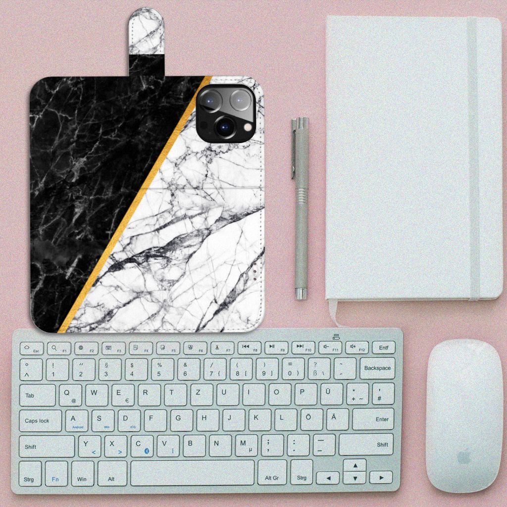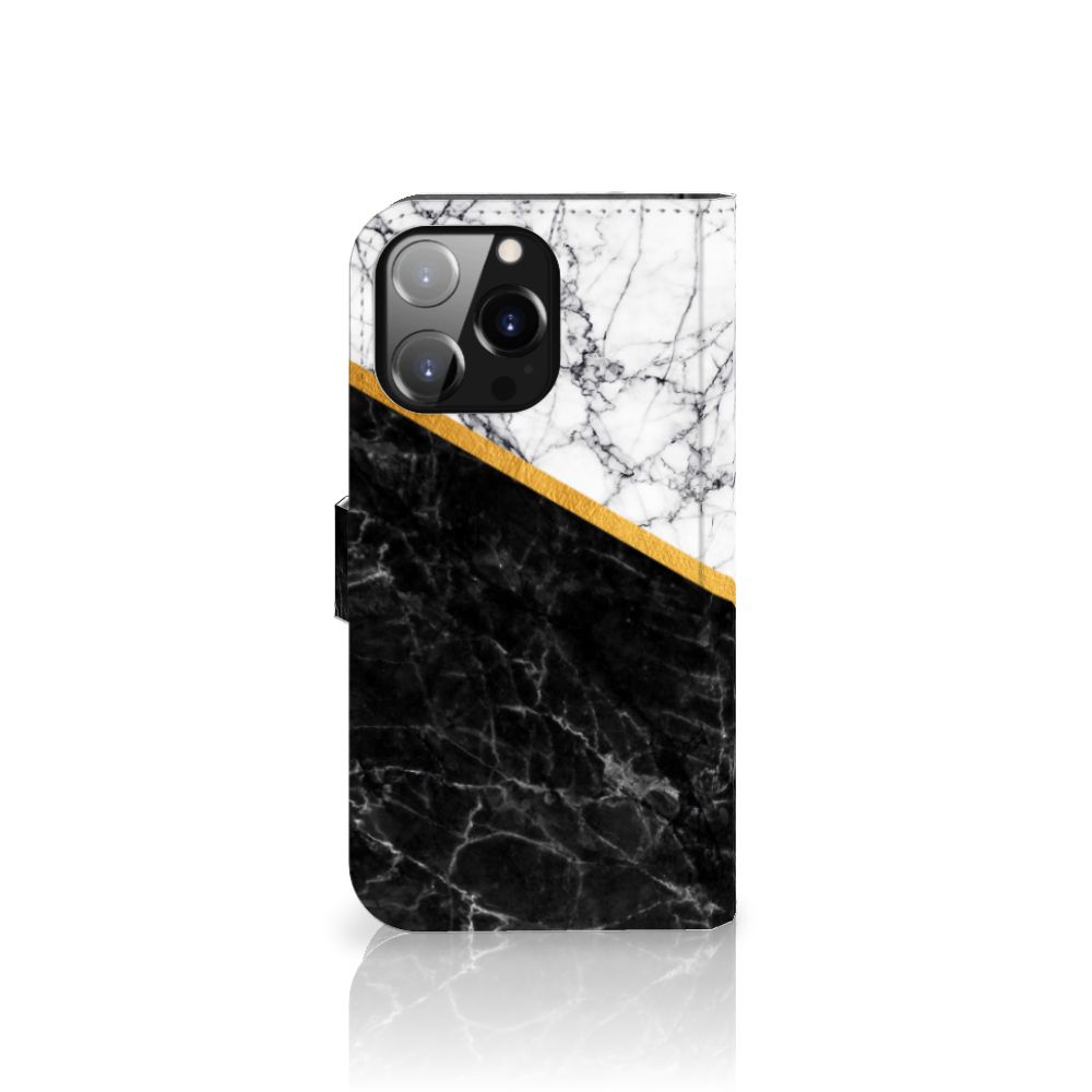 Bookcase iPhone 14 Pro Max Marmer Wit Zwart
