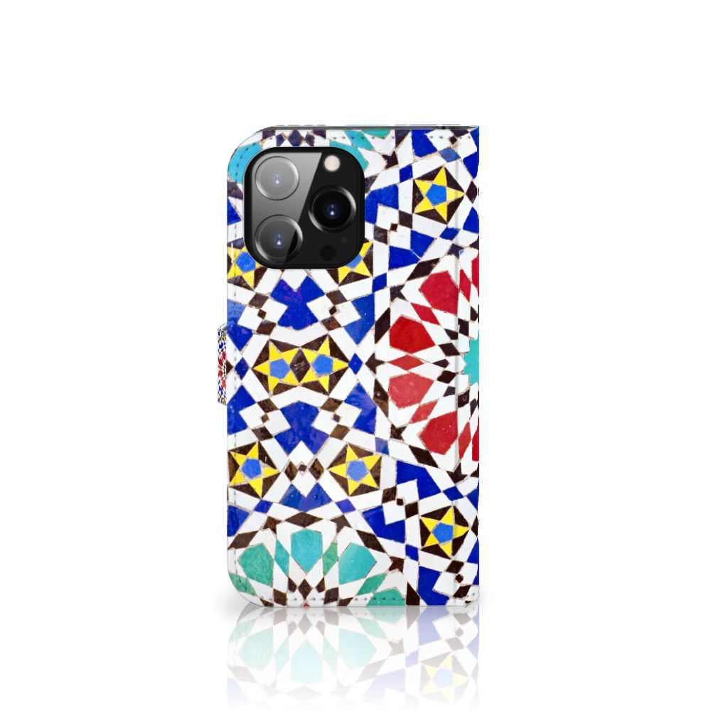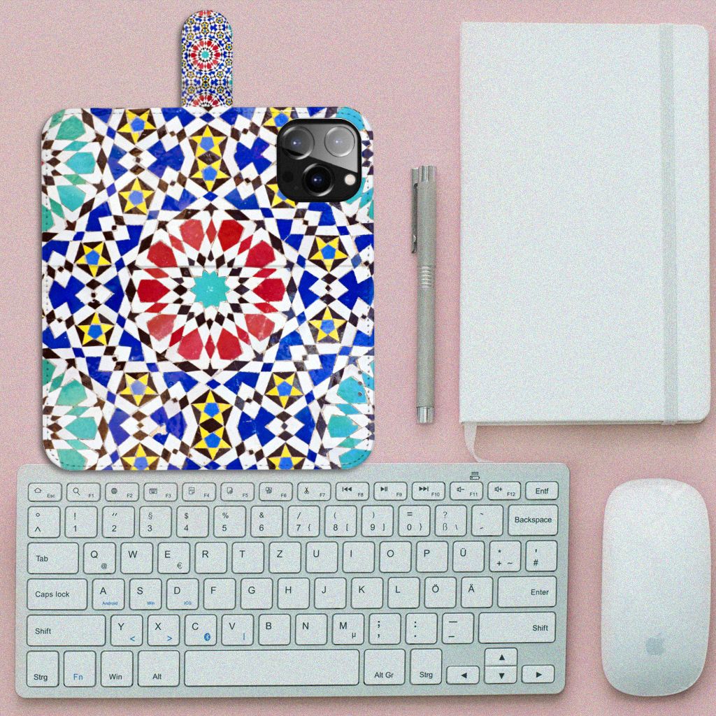 Aan design hoesjes met kunstvormen geen gebrek in onze uitgebreide collectie. Wat dacht je van dit design hoesje met Mozaïek . Dit is een kunstvorm waarbij een grote afbeelding wordt gemaakt uit een groot aantal kleine gekleurde steentjes (tesserae), die in een vloer of wand worden gemetseld. Deze gekleurde steentjes zie je terug op dit boekhoesje met design van mozaïek. Een boekhoesje is zo’n beetje de veiligste case die er bestaat. Een iPhone 14 Pro Max Bookcase met print zorgt voor een volledige bescherming van je smartphone en wordt aan alle zijden bedrukt met mozaïek. Een deel van de foto’s staat ook op het lipje aan de buitenzijde. Verder is de houder aan de binnenzijde van TPU. De Grieken en Romeinen beheersten de kunst al. Op diverse plaatsen in Europa zijn mozaïeken teruggevonden die tot op de dag van vandaag goed bewaard zijn gebleven. Met een hoesje met mozaïek blijft jouw telefoon in tact. Je pasjes en briefgeld kun je in de vakjes aan de binnenzijde stoppen