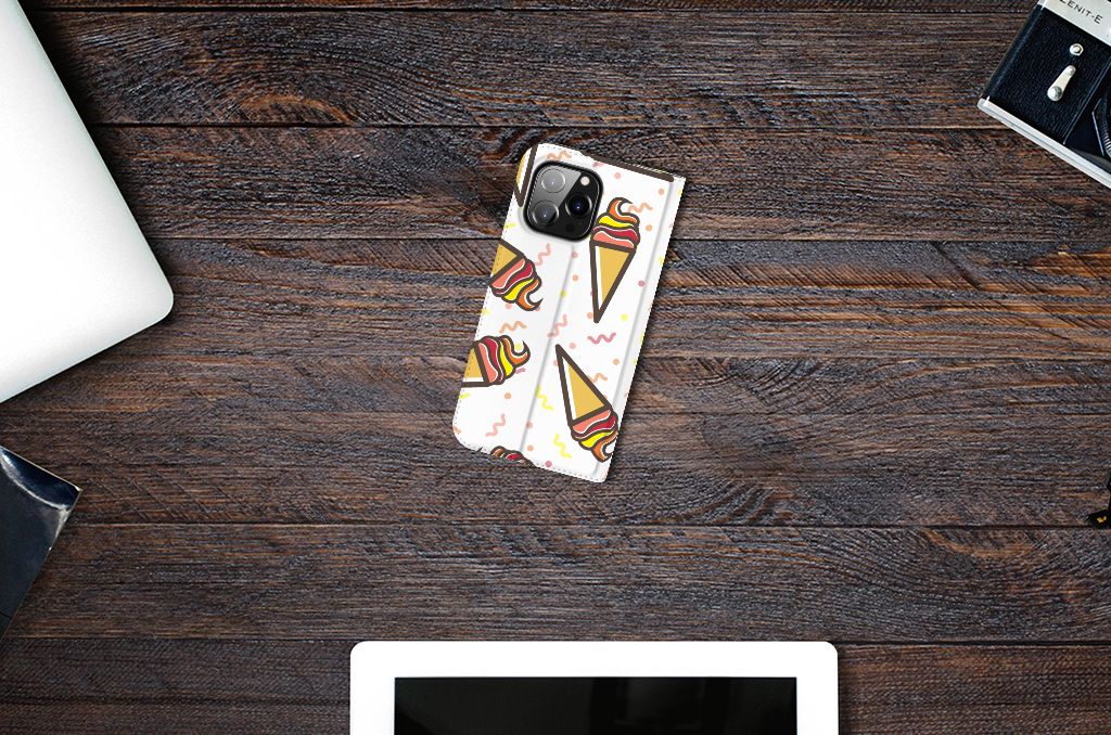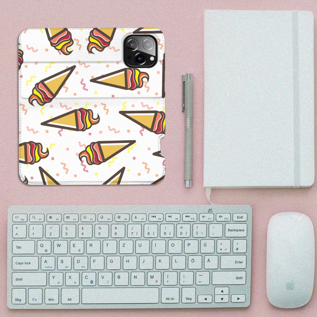 Een vrolijke iPhone 14 Pro Max Flip Style Cover met daarop verschillende ijsjes. Als je daar geen zomers gevoel meer van krijgt, weten wij het ook niet meer. De zomer en ijsjes zijn onlosmakelijk met elkaar verbonden. Tijdens een bezoekje aan het strand mag een lekker ijsje bijvoorbeeld niet ontbreken. Een design hoesje met lekkere Icecream print past daar natuurlijk ook ontzettend goed bij. Jouw telefoon is helemaal beschermd met een stand case met ijsjes design. De aankoop van deze case is een heerlijke investering, die zich gegarandeerd terugbetaalt. Alle zijden van dit hoesje worden bedrukt met ijsjes. De case heeft een speciale standaard en de houder aan de binnenzijde is van TPU. Onder alle weersomstandigheden zal deze case met opbergvakje perfect functioneren, ook in de zomer met een ijsje in je hand. Dit smaakvolle hoesje is zeer goedkoop te bestellen en wordt zeer snel bezorgd.