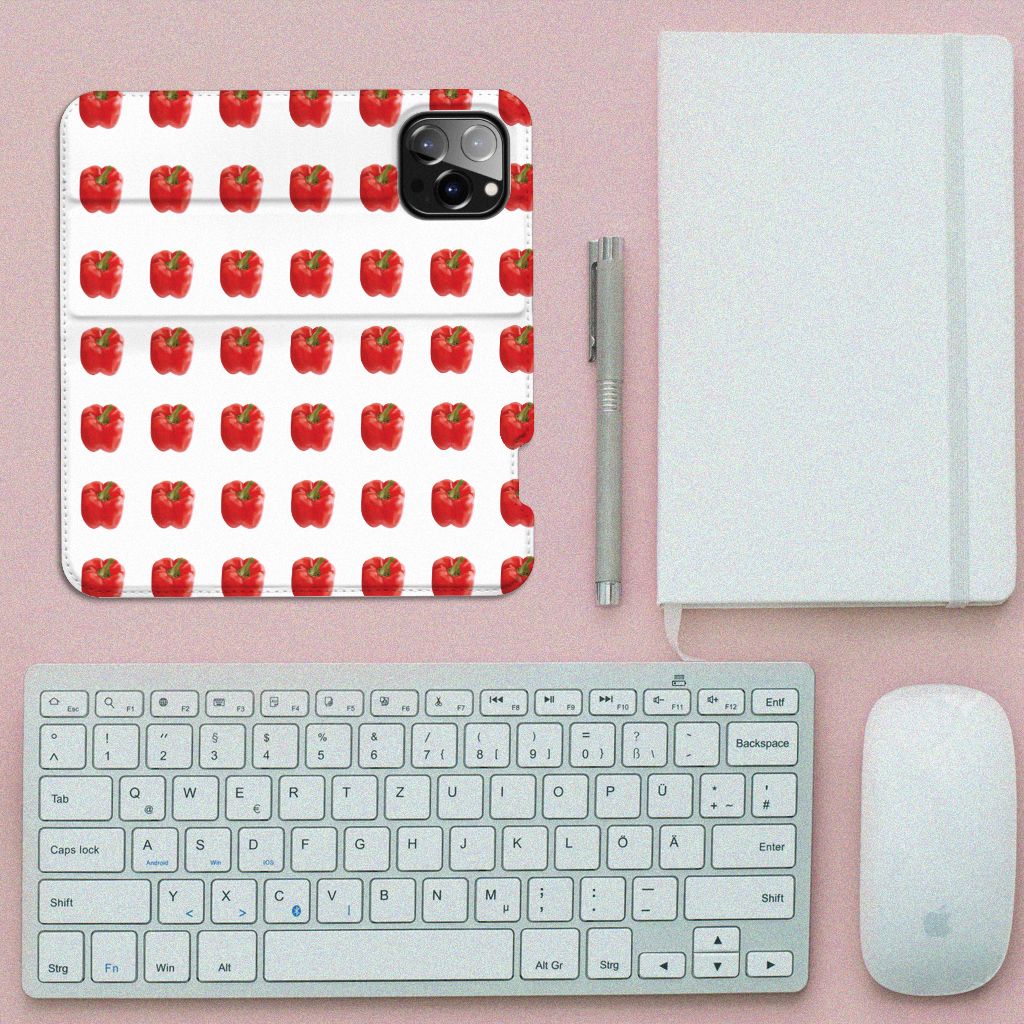 Er zit pit in jouw iPhone 14 Pro Max Flip Style Cover dankzij dit design met rode paprika’s. Paprika’s zijn er in allerlei kleuren en vormen en ze hebben gemeen dat ze heel erg gezond zijn. De rode paprika’s op deze case staan op een grijs met witte geblokte achtergrond en vormen een opvallende verschijning. Heb jij ooit iemand in je nabije omgeving rond zien lopen met een design hoesje met rode paprika’s? Waarschijnlijk niet. Dit stand hoesje met rode paprika’s beschermt jouw telefoon aan alle zijden en beschikt over een opbergvakje voor een pasje of briefgeld. De case sluit perfect af met de magneet aan de binnenzijde. Zeker weten dat je met dit hoesje met rode paprika’s een smartphone accessoire te pakken hebt waarmee je jezelf in de schijnwerpers zet. De houder aan de binnenzijde van de stand case met rode paprika’s is van TPU. Als je andere kleuren paprika’s op je hoesje wilt, raden we je aan ons assortiment design hoesjes te bekijken of zelf een hoesje te ontwerpen.