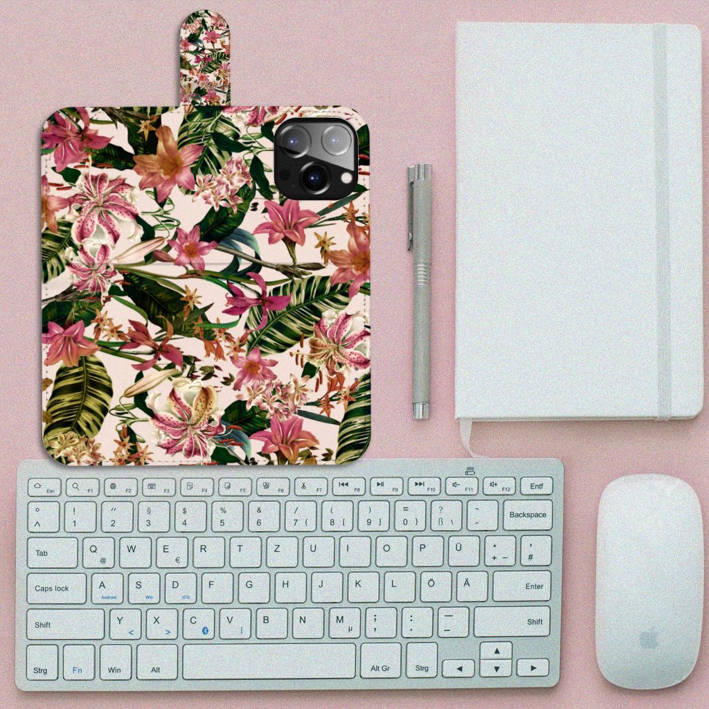 iPhone 14 Pro Max Hoesje met ruimte voor pasjes Flowers