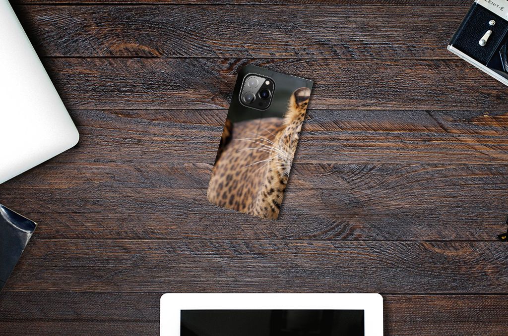 Het luipaard wordt ook wel een panter genoemd en is een sluwe kat. De bruingele vacht met een patroon van rozetachtige vlekken geeft een goede schutkleur. Dit zie je ook op een fraaie manier afgebeeld op dit super stoere hoesje. Mensen die indruk willen maken kopen deze stand case met design van het luipaard. Een iPhone 14 Pro Max Hoesje maken is van alle markten thuis. Het is praktisch – vanwege onder meer het opbergvakje en de magnetische sluiting aan de binnenzijde – maar beschermt jouw smartphone tevens beter dan welke case ook. Het luipaard is sterk en behendig en misschien typeert jou dat ook wel. Dan past dit hoesje met luipaard uitstekend bij jou. De houder van TPU aan de binnenzijde is net zo sterk als het luipaard. Jouw telefoon is perfect beschermd. De case heeft tevens een standaard.