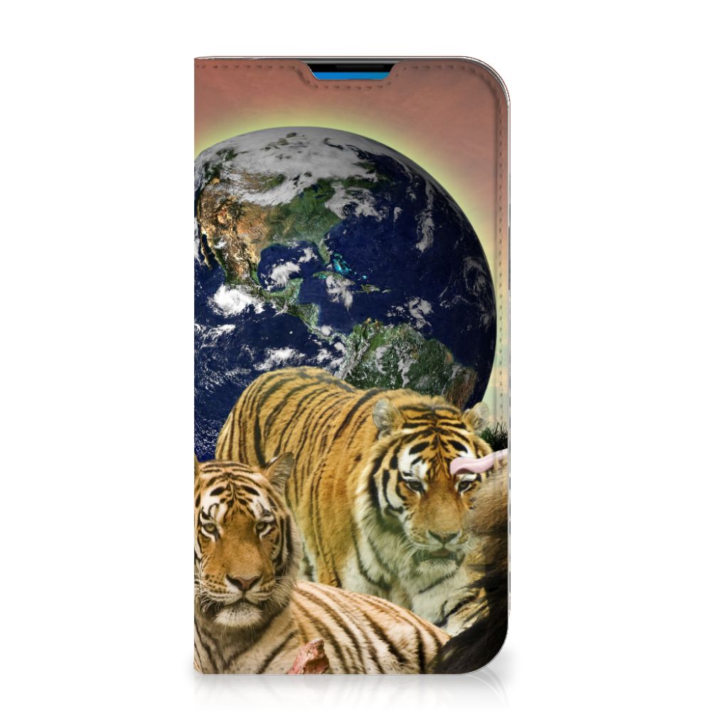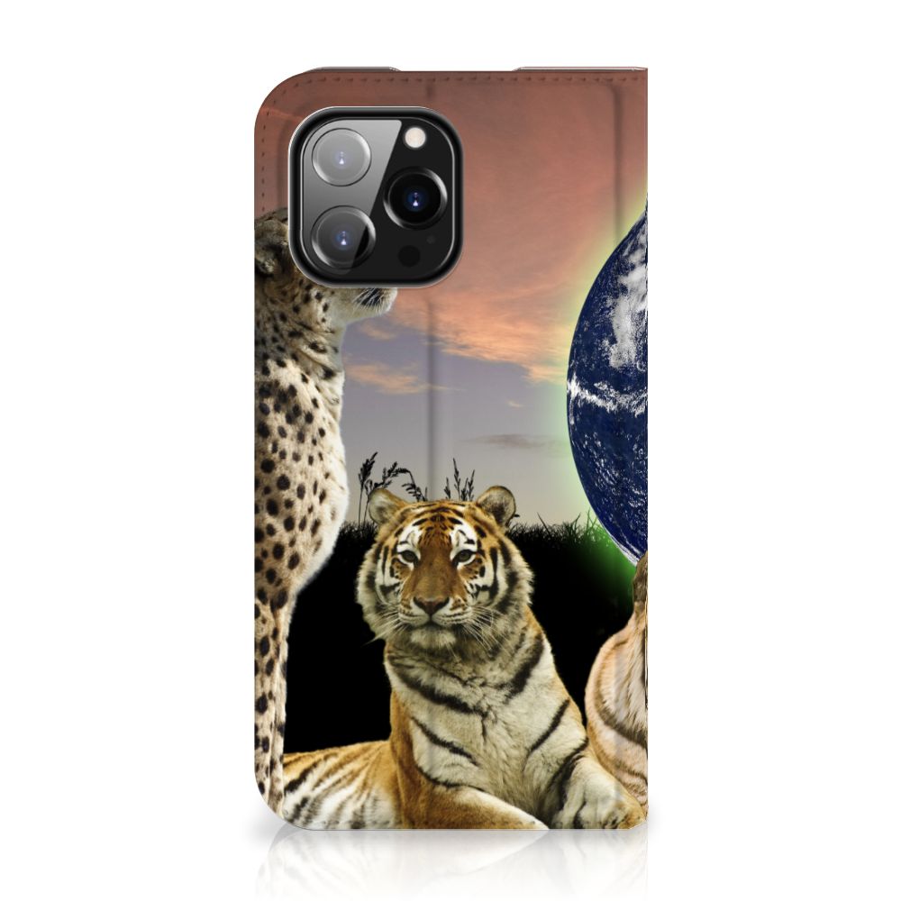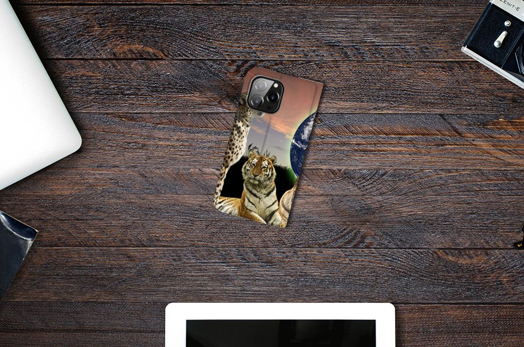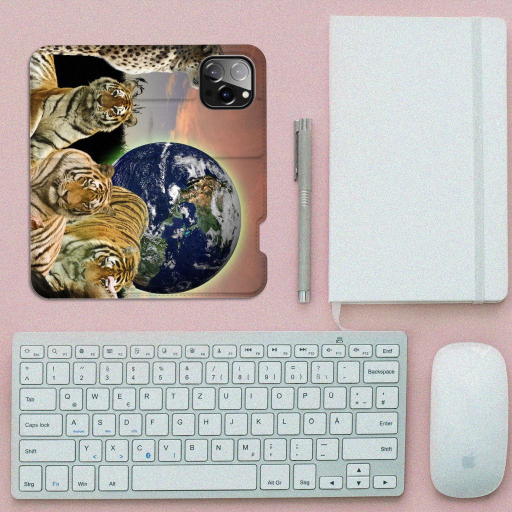 Deze standcase met roofdieren kan exclusief in het bezit van jou komen. Bovendien kun je hier zelf nog unieke teksten en/of beelden aan toevoegen. Je Hoesje maken krijgt dan een unieke identiteit. Roofdieren zoals tijgers op dit hoesje zijn voortdurend op zoek naar een geschikte prooi. De tijgers met aardbol op de achtergrond op deze stand case geven jouw iPhone 14 Pro Max een hele stoere uitstraling. Deze bijzondere case is van PU-leer (buitenzijde) en TPU (binnenzijde) en beschikt over een houder en een speciale standaard. Verder is deze stand case met roofdieren voorzien van een magnetische sluiting aan de binnenzijde. Je zorgt voor de perfecte bescherming van je smartphone met dit design hoesje met roofdieren met aardbol op de achtergrond.