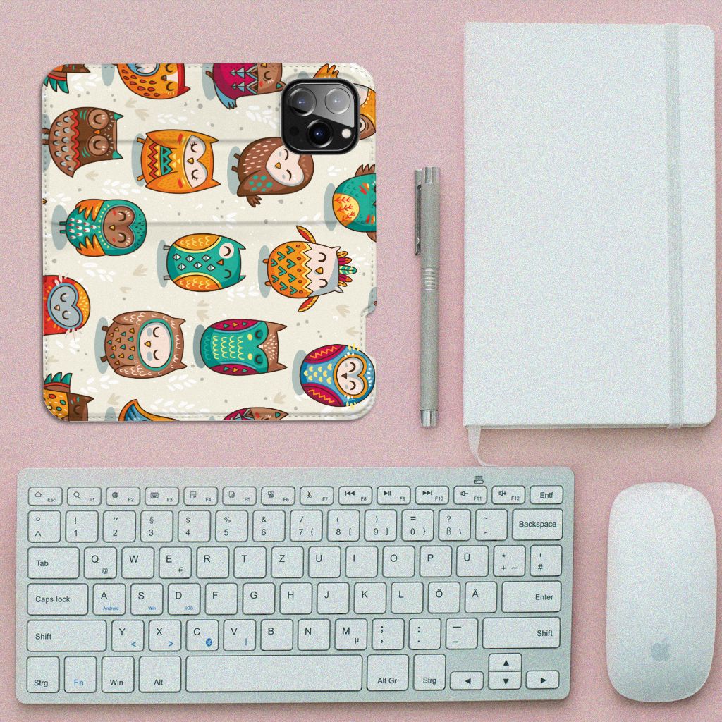 Deze iPhone 14 Pro Max Hoesje maken met Vrolijke Uilen is echt iets voor de nachtbrakers onder ons. De uil is zoals je weet bij uitstek een vogel die in de nachtelijke uren actief is. Ben jij ook iemand die s ’nachts tot leven komt, dan is deze stand case met uilen in felle kleuren echt iets voor jou. Als je tot in de late uurtjes op stap bent, komt het goed uit dat jouw smartphone aan alle kanten goed is beschermd met deze stand case met uilen. De case met uilen heeft een magnetische sluiting aan de binnenkant, waardoor de hoes niet openklapt als die uit je handen valt. Jouw creditcard of pinpas heb je als het goed is veilig opgeborgen in het vakje aan de binnenzijde. De houder aan de binnenzijde van de case met print van uilen is van het flexibele TPU. De wat ruigere types hebben veel baat bij deze stand case met uilen in felle kleuren.