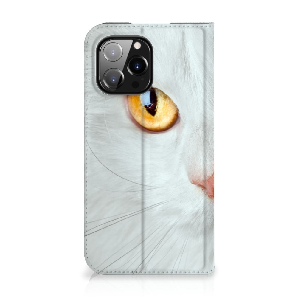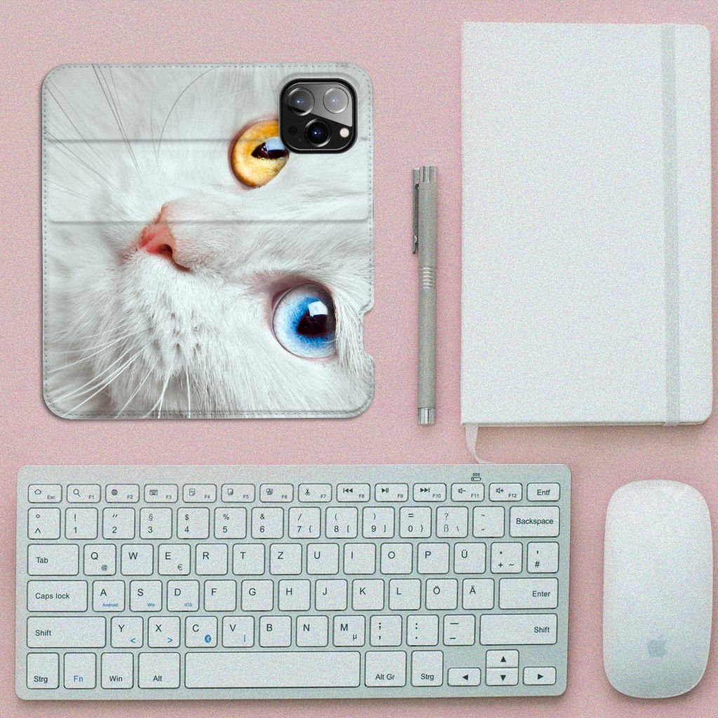 Witte katten zijn natuurlijk extra speciaal, vandaar we een exemplaar op een design hoesje hebben gezet. Een witte kat schijnt trouwens ook slechter te kunnen horen dan katten met een andere kleur. Deze witte kat staat op een zeer prominente wijze op een stand case. Deze stand case met witte kat ziet er geweldig uit en is voorzien van verschillende uitsparingen en een speciale standaard. Een iPhone 14 Pro Max Hoesje maken met witte kat beschermt jouw smartphone perfect. Alle zijden van de case zijn bedrukt. Jouw smartphone wordt erg duurzaam met dit design hoesje. Het TPU aan de binnenzijde is zeer flexibel en het pu-leer oogt chique. Verder heeft de case een houder voor bijvoorbeeld je rijbewijs aan de binnenkant.