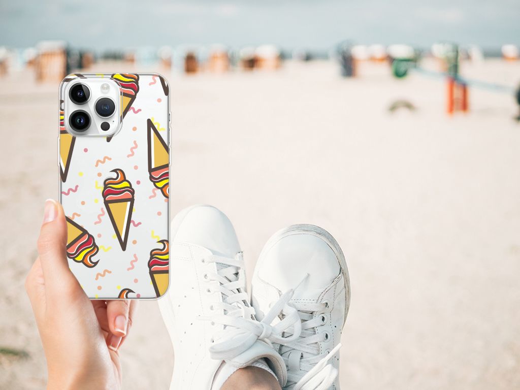 Een vrolijke iPhone 14 Pro Max Siliconen Case met daarop verschillende ijsjes. Als je daar geen zomers gevoel meer van krijgt, weten wij het ook niet meer. De zomer en ijsjes zijn onlosmakelijk met elkaar verbonden. Tijdens een bezoekje aan het strand mag een lekker ijsje bijvoorbeeld niet ontbreken. Een design hoesje met lekkere ijsjes print past daar natuurlijk ook ontzettend goed bij. Jouw telefoon is goed beschermd met een tpu case met Icecream design. De aankoop van deze case is een heerlijke investering, die zich gegarandeerd terugbetaalt. De bovenkant van dit hoesje wordt bedrukt met ijsjes, de zijkanten blijven doorzichtig. De case is gemaakt van schokabsorberend materiaal en past altijd in je broekzak. Onder alle weersomstandigheden zal deze TPU case perfect functioneren, ook in de zomer met een ijsje in je hand. Dit smaakvolle hoesje is zeer goedkoop te bestellen en wordt zeer snel bezorgd.