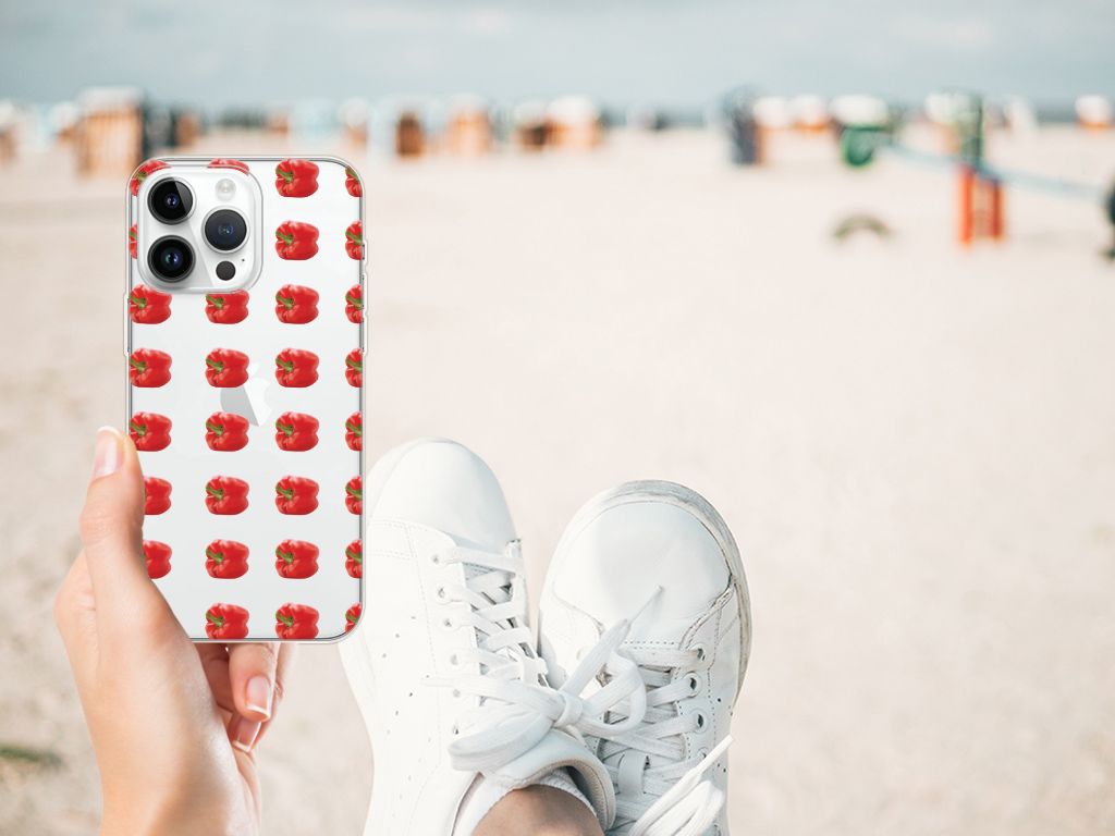 Er zit pit in jouw iPhone 14 Pro Max Siliconen Case dankzij dit design met rode paprika’s. Paprika’s zijn er in allerlei kleuren en vormen en ze hebben gemeen dat ze heel erg gezond zijn. De rode paprika’s op deze case staan op een grijs met witte geblokte achtergrond en vormen een opvallende verschijning. Heb jij ooit iemand in je nabije omgeving rond zien lopen met een design hoesje met rode paprika’s? Waarschijnlijk niet. Dit hoesje wordt alleen aan de bovenkant bedrukt met paprika’s en is zeer flexibel. De randen van het hoesje blijven transparant en worden niet bedrukt. Met dit hoesje past jouw telefoon altijd in je broekzak. Zeker weten dat je met dit hoesje met rode paprika’s een smartphone accessoire te pakken hebt waarmee je jezelf in de schijnwerpers zet. Als je andere kleuren paprika’s op je hoesje wilt, raden we je aan ons assortiment design hoesjes te bekijken of zelf een hoesje te ontwerpen.