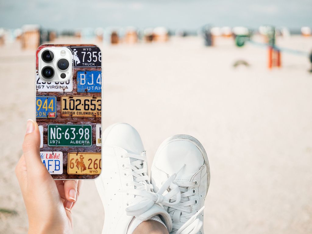 Je gaat waarschijnlijk helemaal uit je plaat met deze iPhone 14 Pro Max Siliconen Hoesje met foto met Amerikaanse Kentekenplaten. Kentekenplaten van Utah, Virginia, Nebraska, Kansas en Iowa: ze komen allemaal voorbij op deze opzienbarende tpu case, te koop voor een zeer scherpe prijs. Behalve een hoes met een fraaie print van kentekenplaten krijg je ook een case met zeer veel praktische eigenschappen. Zoals het elastische materiaal, dat de ergste schokken en stoten zeer makkelijk opvangt als je telefoon op de grond valt. De case wordt aan de bovenkant bedrukt, terwijl de zijkanten transparant blijven. De case heeft opstaande randen, waardoor het scherm extra beschermd is. Samen met een screenprotector is een betere bescherming dan deze tpu case met Amerikaanse kentekenplaten nauwelijks denkbaar.
