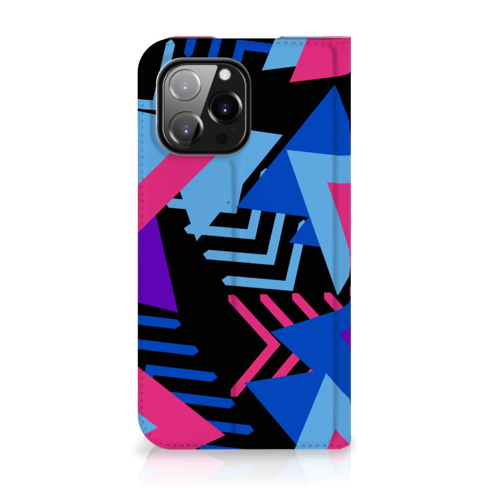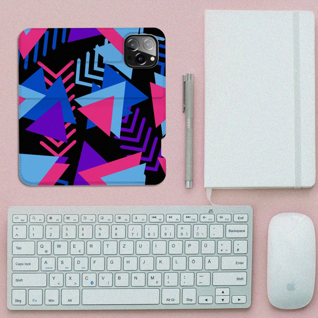 Dit fraaie hoesje met het design Funky Triangle is alles behalve eenvoudig en sober. Dat komt goed uit, want je hebt natuurlijk ook geen doorsnee telefoon gekocht. Mocht je dat wel hebben gedaan, dan wordt hij meteen speciaal als je een iPhone 14 Pro Max Stand Case koopt voor een spotprijsje. Een ding is zeker: opvallen ga je beslist met dit hoesje met paarse, roze en blauwe driehoeken. Jij zult in je element zijn met dit design hoesje met paarse, roze en blauwe driehoeken, omdat het er schitterend uitziet en jouw telefoon perfect beschermt. Het smartphonehoesje beschermt jouw telefoon aan alle zijden en beschikt over 1 opbergvakje en een speciale standaard. Het hoesje wordt afgesloten met een magneet aan de binnenzijde. De houder aan de binnenzijde is van TPU. Alle zijden van de stand case worden bedrukt. De paarse, roze en blauwe driehoeken maken de case helemaal af.