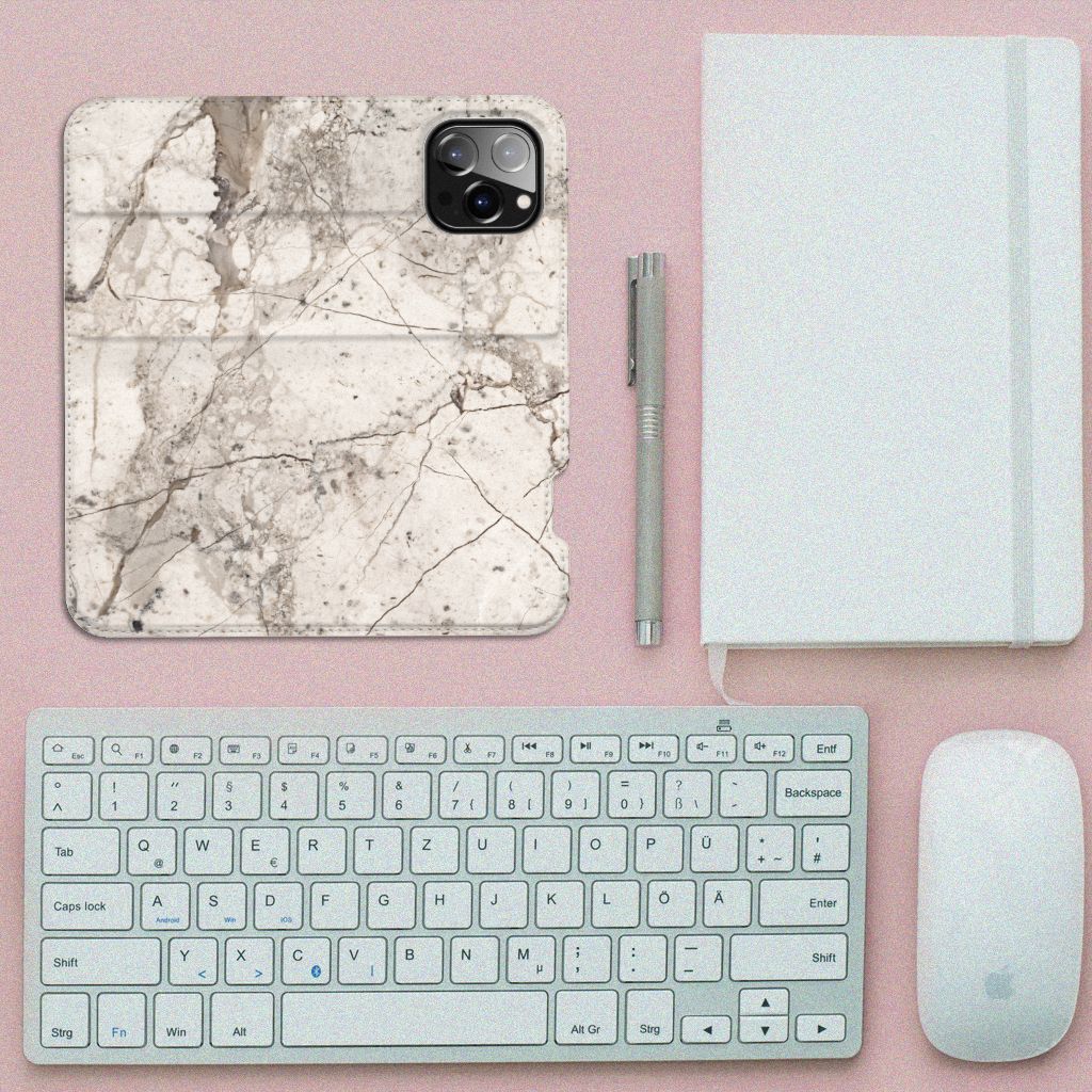 Dit design hoesje met Marmer Beige is voor de artistieke personen onder ons. De Grieken en Romeinen wisten het steen al te waarderen door het als bouw- en bekledingsmateriaal toe te passen. Naast het witte Carrara marmer met haar zacht grijze geaderde belijning zijn de diverse marmersoorten in een ruim kleurenpallet te krijgen. We hebben verschillende kleuren op design hoesjes gezet, zoals in dit geval beige marmer. Dit is een iPhone 14 Pro Max Standcase met marmer in beige kleur. Het marmer wordt bedrukt op alle zijden van een stand case, die beschikt over 1 vakje voor een pasje en toebehoren en een magnetische sluiting aan de binnenkant. Verder heeft de case een houder van TPU. De rijkheid aan kleuren en varianties in afwerking geeft designers de vrijheid om met marmer hele mooie architectonische projecten te realiseren. Wij hebben onze designer ook veel vrijheid gegeven. Het resultaat zie je terug in deze stand case met beige marmer, dat de ideale bescherming voor jouw smartphone biedt.