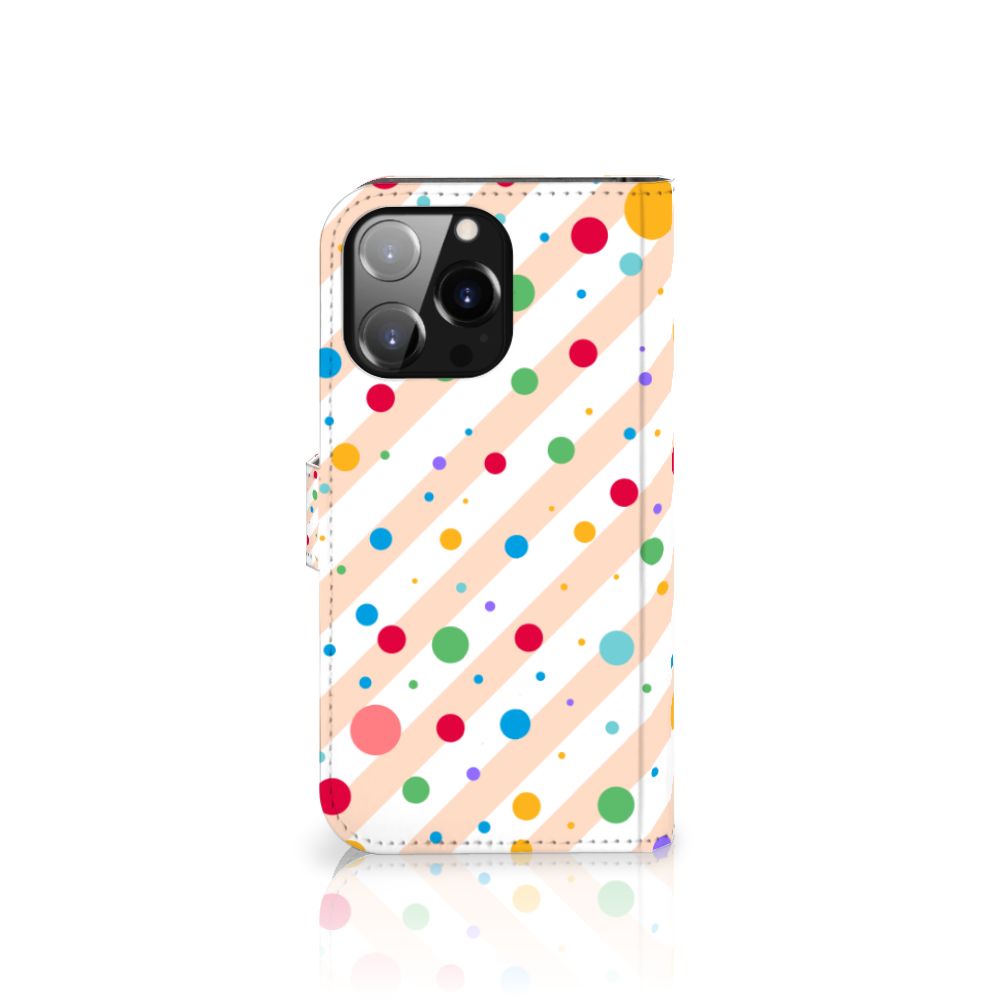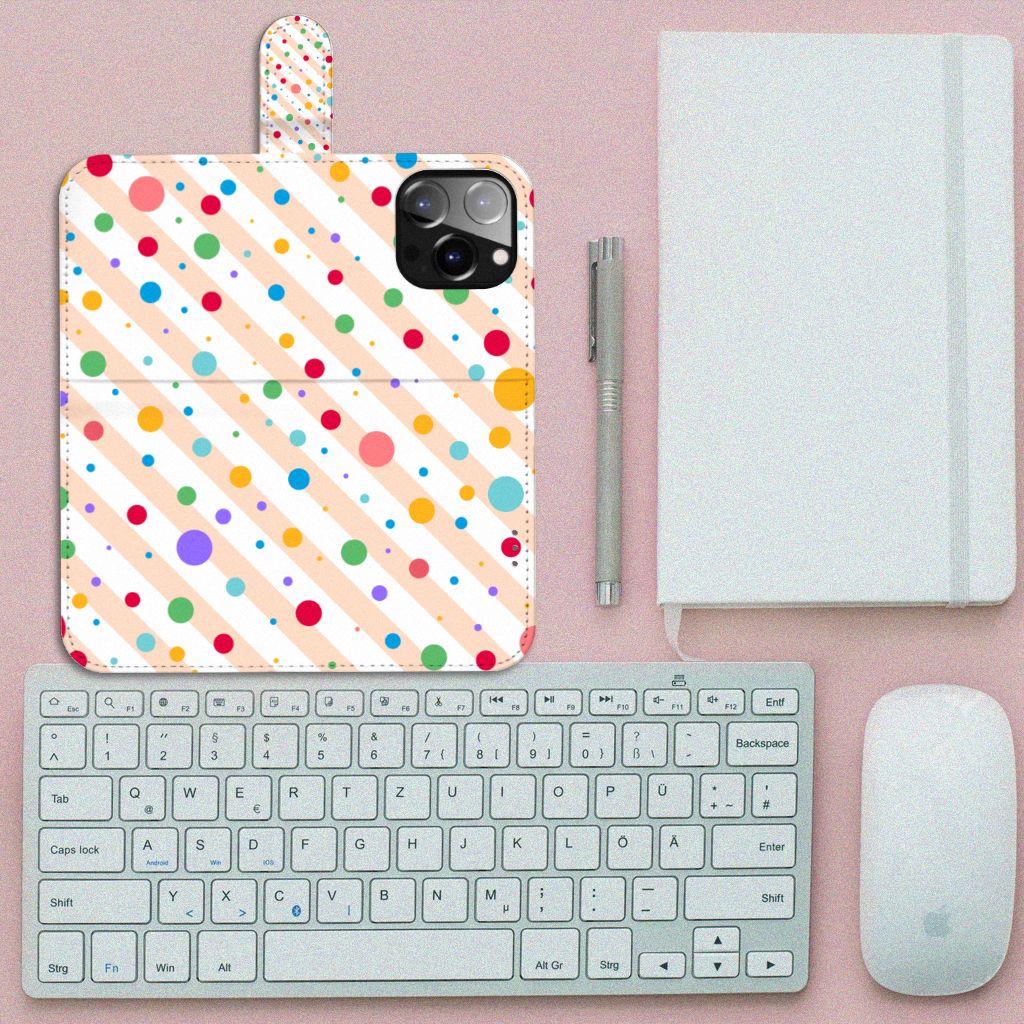 Een iPhone 14 Pro Max Telefoon Hoesje met verschillende kleuren stippen is een schitterende bescherming van jouw smartphone. Het boekhoesje met het design Dots in alle kleuren van de regenboog komt voor jou als geroepen. Maak je geen gebruik van dit zeer mooie hoesje, dan kan het met jouw smartphone een beetje beroerd aflopen. Dit mooie boekhoesje met verschillende kleuren stippen zorgt voor een volledige bescherming van je smartphone en wordt aan alle zijden bedrukt. Sommige stippen staan ook op het magnetische lipje aan de buitenzijde. Verder is de houder aan de binnenzijde van TPU. Jouw telefoon is dus zeer goed opgeborgen en kan geen kant op. Met een hoesje met stippen in verschillende kleuren op alle zijden blijft jouw telefoon volledig in tact. Heb je liever een boekhoesje met stippen in andere opvallende kleuren? Ontwerp dan zelf case met je eigen foto’s en teksten!