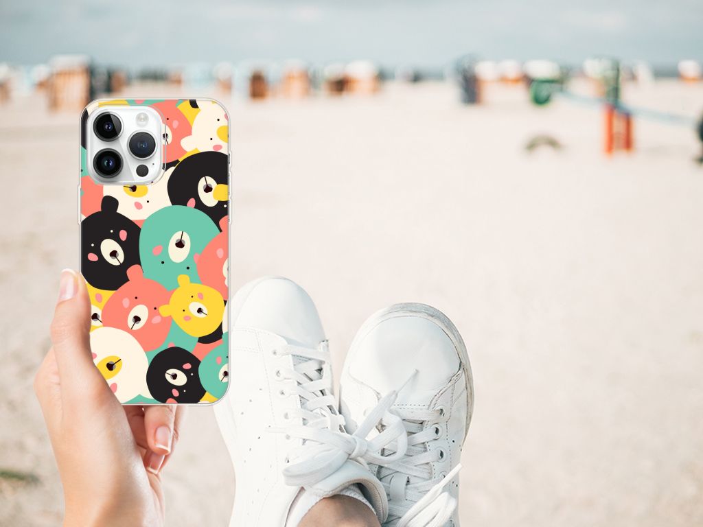 Op dit hoesje vind je een bereschattig ontwerp! Vergeef ons de woordgrap, maar hoe moeten we dit lieve ontwerp anders omschrijven? Op dit knuffelige ontwerp zie je leuke, getekende beertjes in vrolijke kleuren als geel, blauw en roze. Dankzij de contrasterende witte en zwarte beertjes vallen de felle kleurtjes nog meer op. Al met al is dit Telefoonhoesje met Naam voor de iPhone 14 Pro Max een perfect hoesje voor de knuffelberen onder ons. TPU is flexibel en onbreekbaar. Zo is je telefoon aan de achterkant en de randen heel goed beschermd. De case met het Bears-design is aan de bovenkant bedrukt, de randen blijven transparant. Het TPU-hoesje is perfect te combineren met een screenprotector, zo zijn je telefoon en je beeldscherm perfect beschermd.