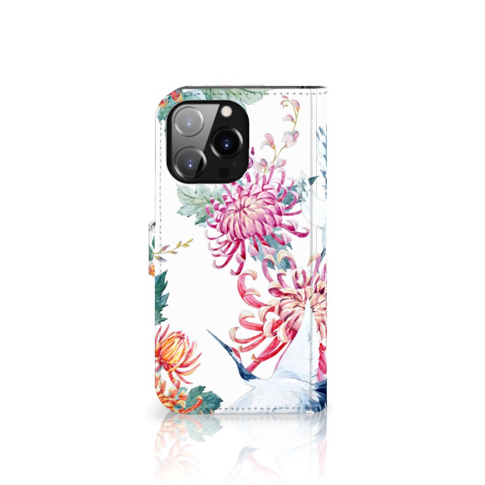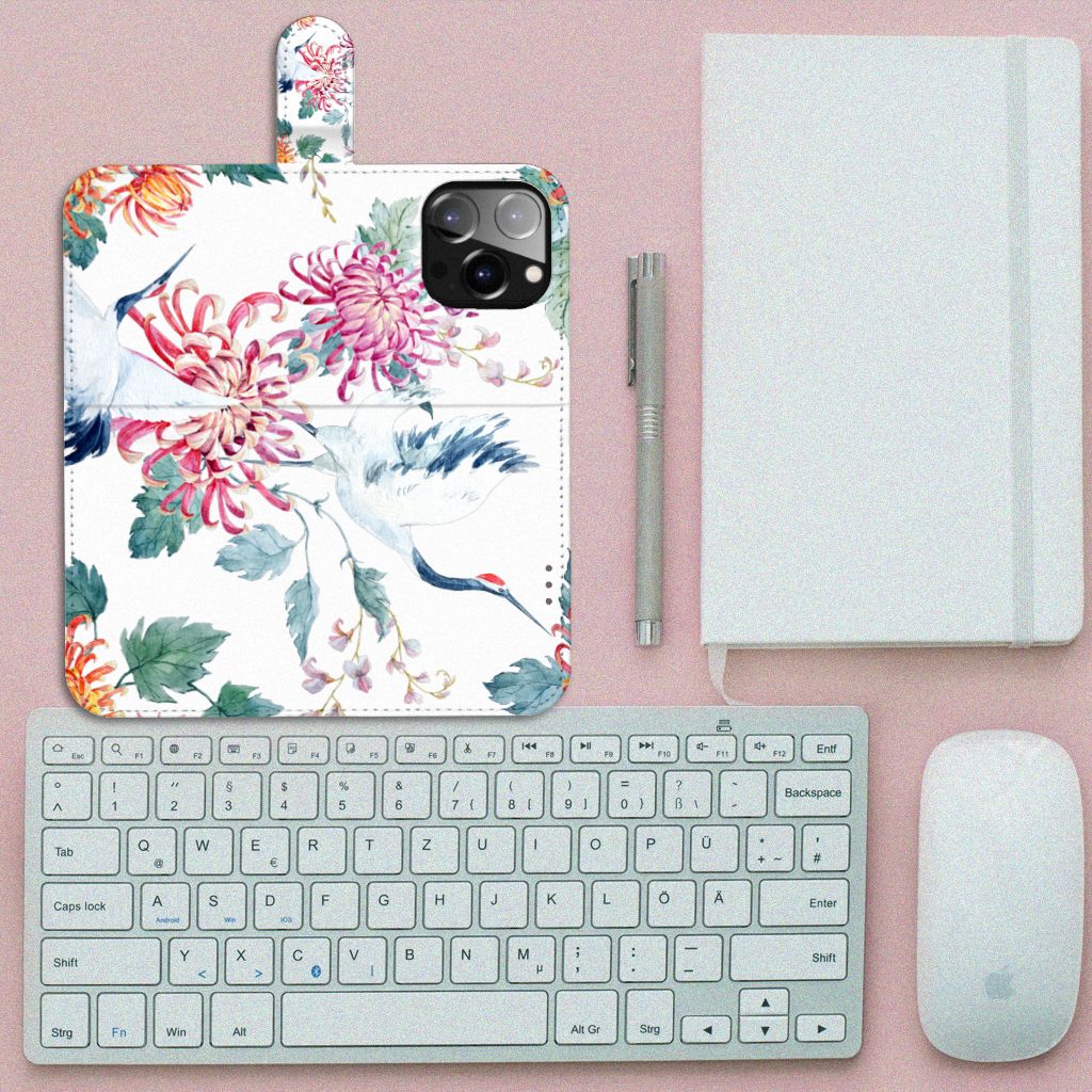 iPhone 14 Pro Max Telefoonhoesje sluit met magnetische lipje Bird Flowers