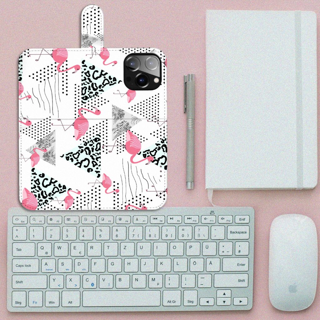iPhone 14 Pro Max Telefoonhoesje met magnetische lipje als sluiting Flamingo Triangle