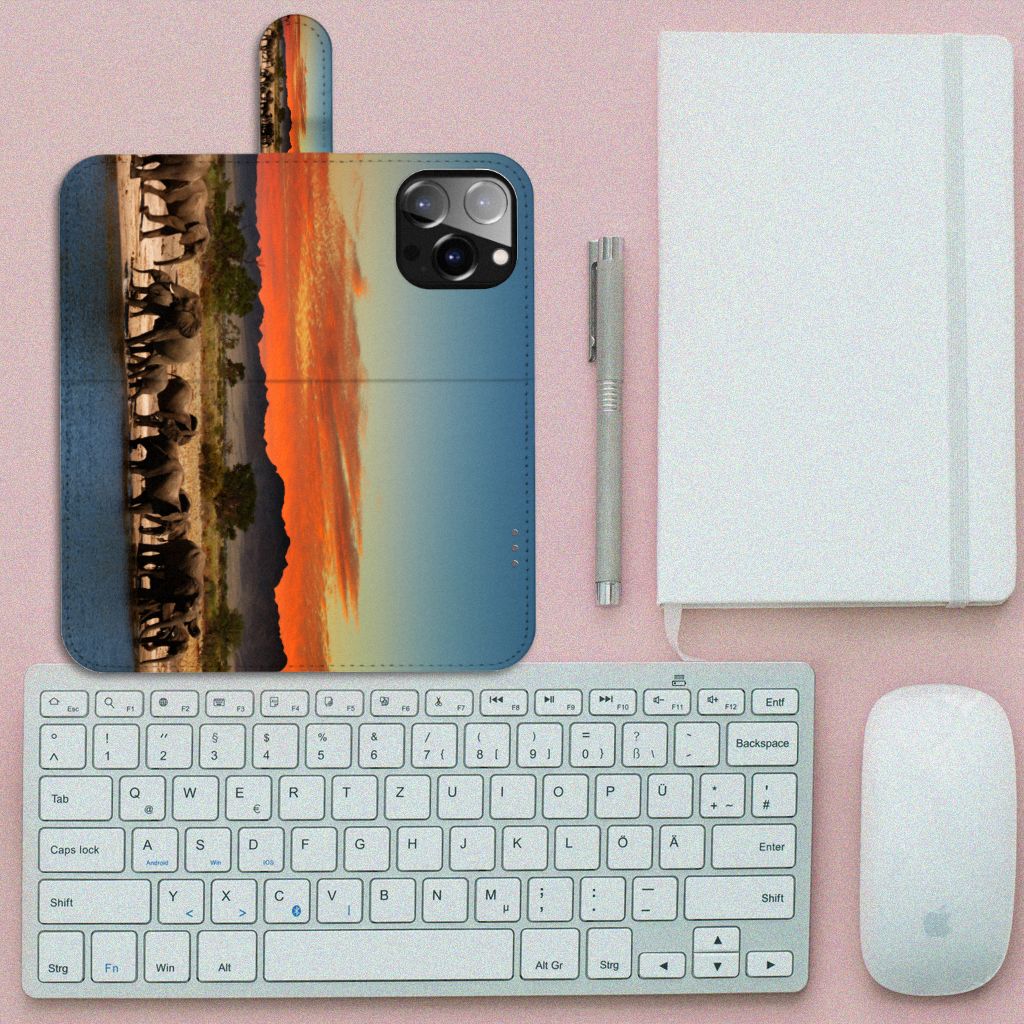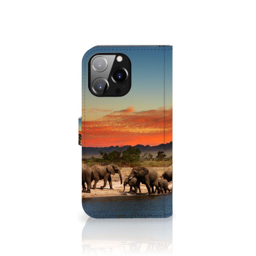 iPhone 14 Pro Max Telefoonhoesje met ruimte voor 3 pasjes Olifanten