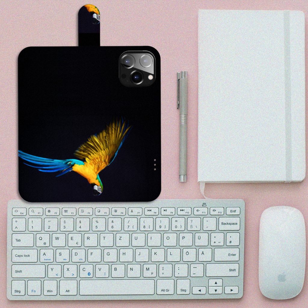 iPhone 14 Pro Max Telefoonhoesje met ruimte voor 3 pasjes Papegaai