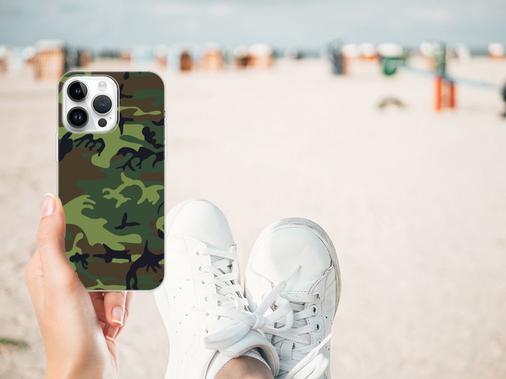 Voel je jezelf verbonden met het leger, dan zal deze iPhone 14 Pro Max TPU bumper je zeker bevallen. Het tpu hoesje beschikt namelijk over donkere camouflage kleuren. Deze worden vaak gebruikt door mensen die zich graag willen mengen in hun omgeving. Dit Army Dark hoesje is er dus voornamelijk in kleuren die in de natuur voorkomen, zodat je één wordt met je achtergrond. Beschermt de krijgsmacht volk en vaderland, dit hoesje in donkere camouflage kleuren zal jouw telefoon onder alle omstandigheden schadevrij houden. Met een hoesje in dit soort kleuren zal je niet zo snel opvallen. Het design staat op een TPU case. Dit hoesje wordt alleen aan de bovenkant bedrukt met donkere camouflage kleuren en is zeer flexibel. De randen van het hoesje blijven transparant.