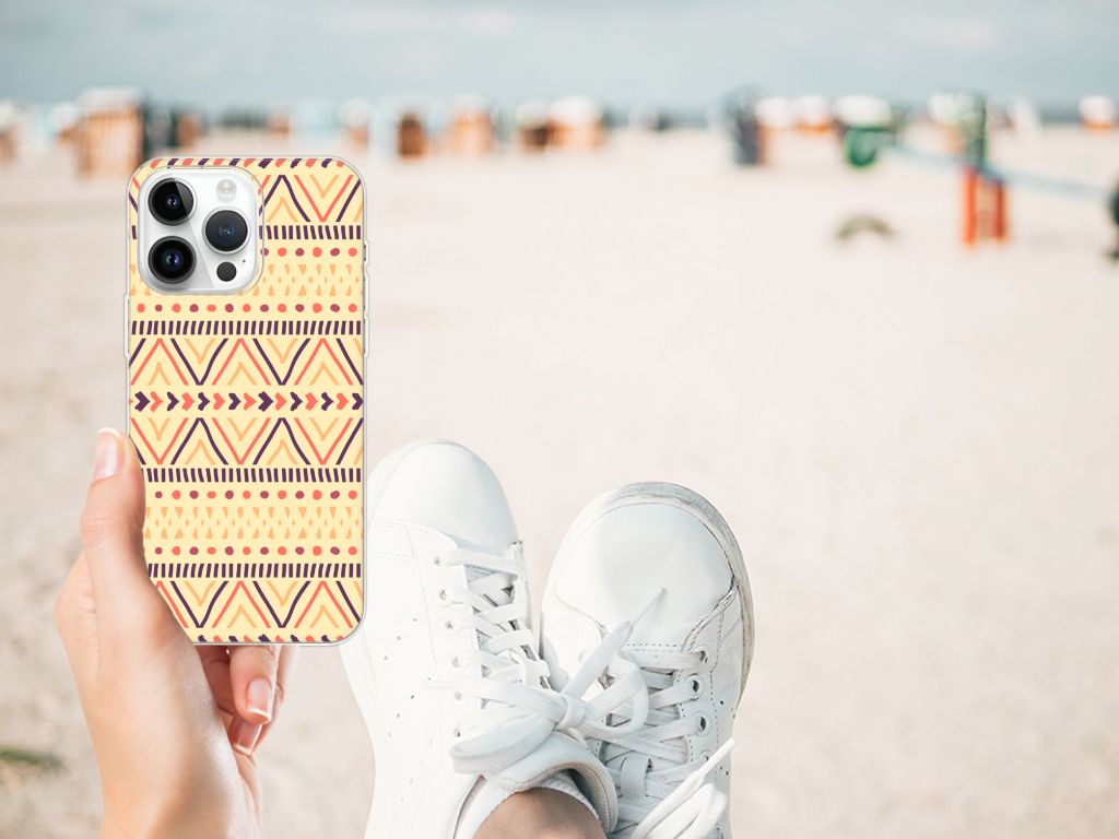 De Azteken leefden tussen 1200 en 1521 in het huidige Mexico. De mooie Aztec-patronen waar zij bekend om stonden, zien we nu nog op kleding, stoffen en tassen. Wie had toen kunnen bedenken dat we diezelfde prints honderden jaren later zelfs op een telefoonhoesje zouden vinden? Dit kleurrijke Aztec Yellow-hoesje is perfect voor iedereen die een stukje geschiedenis bij zich wil dragen maar ook gewoon een mooi patroon op zijn hoesje wil. Dit vrolijke, kleurrijke ontwerp staat op een TPU bumper voor de iPhone 14 Pro Max. TPU is flexibel en onbreekbaar. Zo is je telefoon aan de achterkant en de randen heel goed beschermd. De case is aan de bovenkant bedrukt, de randen blijven transparant.