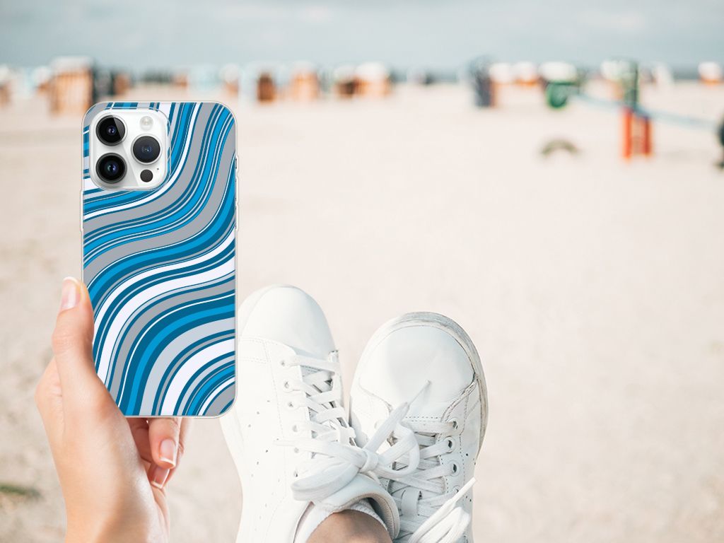 Zeer cool, dit hoesje met vooral blauwe kleuren, die in een golvende beweging jouw telefoon van een mooie uitstraling voorzien. Tijdens een zonnige vakantie aan zee is jouw smartphone perfect beschermd met dit telefoonhoesje. Het design Waves Blue van dit smartphone hoesje doet lichtjes denken aan een lolly, waarmee je een klein kind zeer blij maakt. Jouw iPhone 14 Pro Max zal er ook zeer vrolijk uitzien samen met dit design hoesje. De witte en grijze kleuren staan in mooi contrast met het blauw, waardoor de uitstraling van deze accessoire zeer mooi is. Ook voor andere kleuren kun je natuurlijk uitstekend terecht in ons assortiment. Het design staat op een TPU bumper. Dit hoesje wordt alleen aan de bovenkant bedrukt en is zeer flexibel. De randen van het hoesje blijven transparant.
