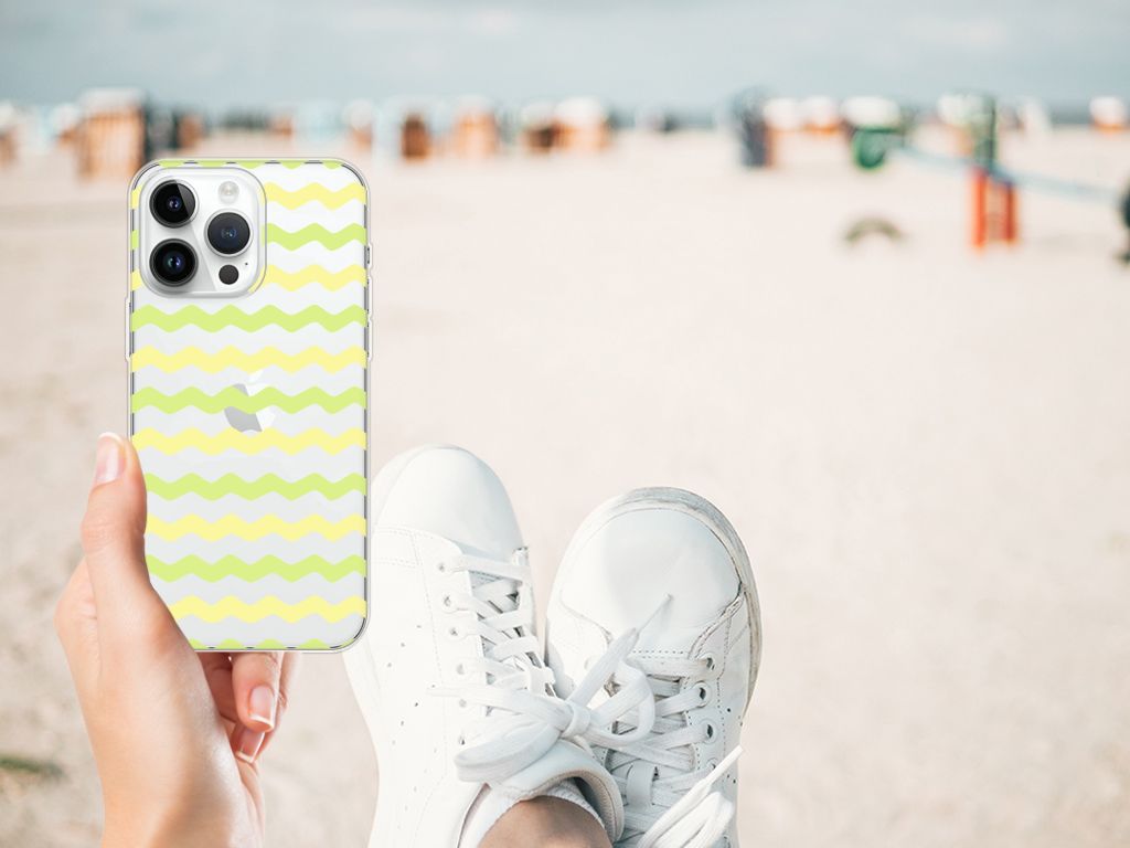 Dit Waves Yellow design hoesje met licht groene en gele golven is speciaal ontworpen voor jouw telefoon. We hebben een vleugje lichtgeel toegevoegd, zodat de case er een beetje spannender en leuker uitziet. Dit licht groene hoesje met licht groene golven ziet er oogstrelend uit. Het wordt in ons eigen magazijn bedrukt, in zeer goede kwaliteit inkt. Wij kunnen dus een zeer duurzaam hoesje met licht groene golven garanderen. Dit hele mooie iPhone 14 Pro Max TPU bumper heeft vele extra’s. Is dit licht groene design hoesje je op het lijf geschreven? Grijp dan nu je kans. Deze TPU case met lichtgroene golven wordt alleen aan de bovenkant bedrukt en is zeer flexibel. De randen van het hoesje met licht groene golven blijven transparant en worden niet bedrukt. Met dit hoesje past jouw telefoon altijd in je broekzak.