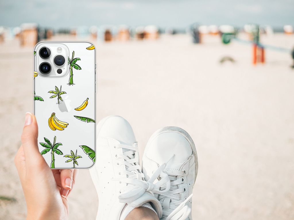 Heb jij al zin om op vakantie te gaan? Dat krijg je hoe dan ook als je één blik werpt op dit vrolijke hoesje voor je iPhone 14 Pro Max met Banana Tree design. Het fleurige tafereel van bananenbomen, bananenbladeren en bananen doet je gedachten afdwalen naar paradijselijke bountystranden met azuurblauwe zee en helderwitte zandpartijen. Kortom: dit hoesje is goed voor je humeur. Naast het luchtige design zijn daar nog meer redenen voor, want dankzij de stevige materialen weet je zeker dat dit TPU Case je telefoon altijd optimaal beschermt Dit hoesje wordt alleen aan de bovenkant bedrukt en is zeer flexibel. De randen van het hoesje blijven transparant. Met dit hoesje breng je jezelf in zomerse sferen en gun je jezelf een krasvrije telefoon.