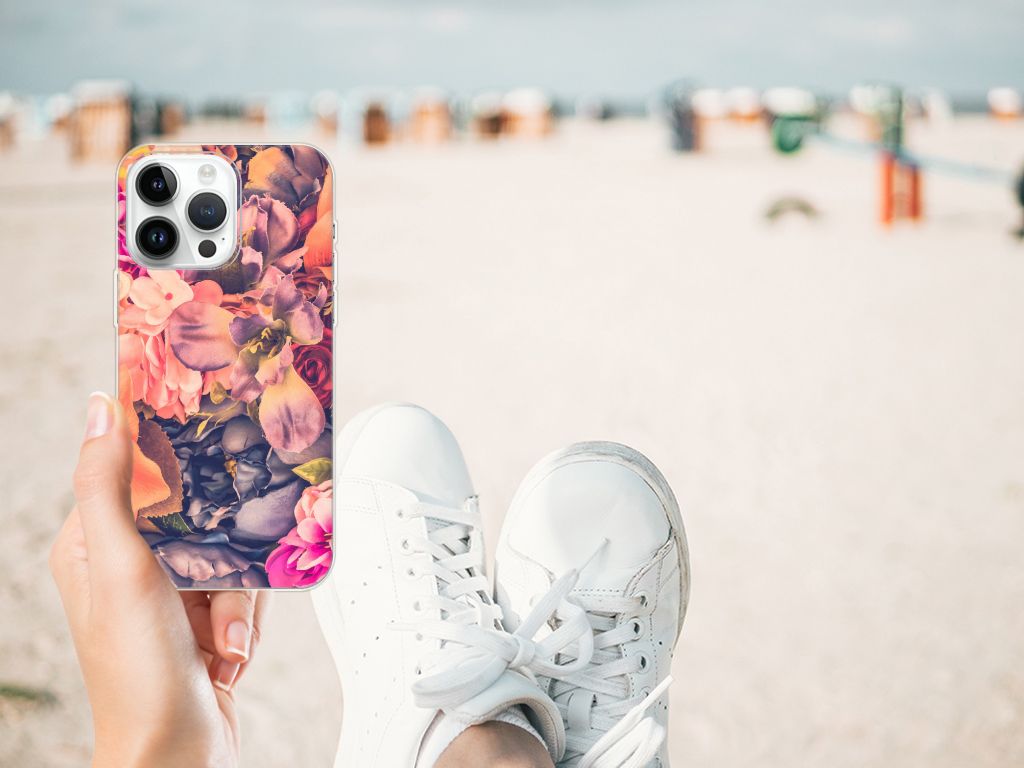 Dit Bosje Bloemen doet een mens en zijn smartphone goed. De oranje, paarse en roze bloemen op deze iPhone 14 Pro Max TPU Case geven jouw smartphone een zeer sierlijke uitstraling. Je wordt er ook meteen vrolijker van als je aan het appen, mailen of aan het bellen bent. Valt dan je telefoon op de grond, dan zal er dankzij de tpu case met oranje, paarse en roze bloemen geen schade ontstaan. Helemaal niet als je er een screenprotector bij hebt gekocht. Onze tpu cases met oranje, paarse en roze bloemen zien er zeer prettig uit en zijn heel praktisch, getuige onder meer de opstaande randen en het flexibele materiaal. Alleen de achterkant van de tpu case wordt bedrukt met oranje, paarse en roze bloemen. Op deze tpu case is het ook mogelijk je eigen ontwerp te zetten. In no time ontwerp je zelf een tpu case met daarop foto’s van jouw favoriete bloemen.