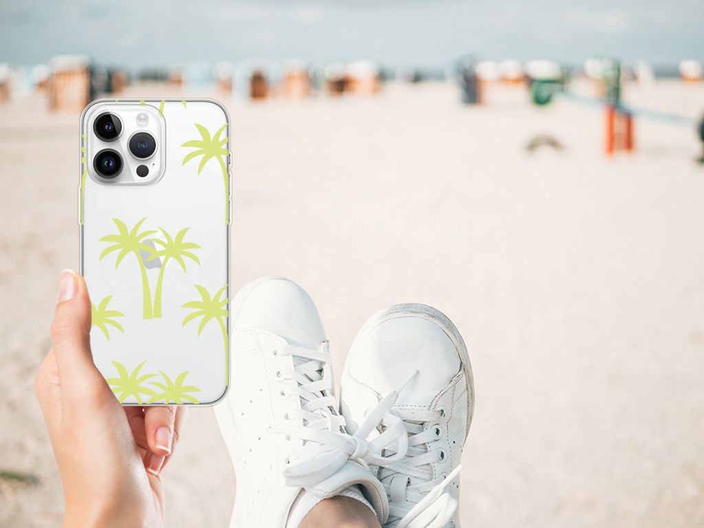 Je krijgt direct een vakantiegevoel als je kiest voor een iPhone 14 Pro Max TPU Case met opdruk van lichtgroene Palmtrees. Sommige mensen hebben ook een palmboom in hun tuin staan, wij kunnen er meerdere op een tpu case zetten. Jouw smartphone is op en top beschermd met een tpu case met lichtgroene palmbomen tegen een witgrijze achtergrond en ziet er schitterend uit. Het is heel verstandig je telefoon te beschermen met een tpu hoesje met palmbomen tegen een witgrijze achtergrond. De TPU case met print van lichtgroene palmbomen beschermt jouw telefoon voornamelijk aan de achterzijde. De randen van de case worden niet bedrukt met lichtgroene palmbomen. TPU is zeer flexibel.