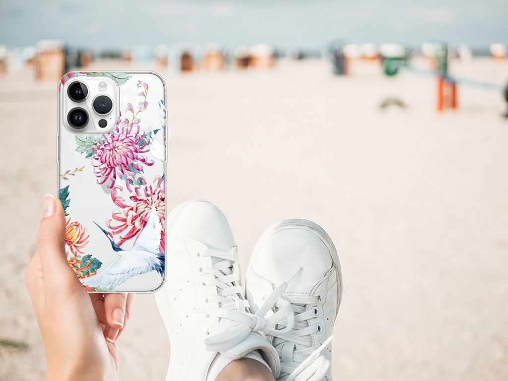 Verspreid over de hele wereld leven 19 soorten ooievaars. De spanwijdte – dat is de afstand van vleugeltip tot vleugeltip – van een volwassen ooievaar kan 2.50 meter bedragen. De gebieden waarin de ooievaar broedt, liggen in heel Europa, het Midden-Oosten, West- en Centraal-Azië en Noordwest-Afrika. Het ideale leefgebied van de ooievaar is een half open tot open landschap met veel afwisseling in grondgebruik en begroeiing. De begroeiing op dit design hoesje, in allerlei verschillende kleuren, zal niet alleen voor de ooievaars fraai zijn. Jij zult er zelf ook heel vrolijk van worden. Het in het oog springende design staat op een TPU Hoesje. Dit telefoonhoesje wordt alleen aan de bovenkant bedrukt en is zeer flexibel. De randen van het hoesje blijven transparant en worden niet bedrukt. Met dit hoesje past jouw iPhone 14 Pro Max altijd in je broekzak.