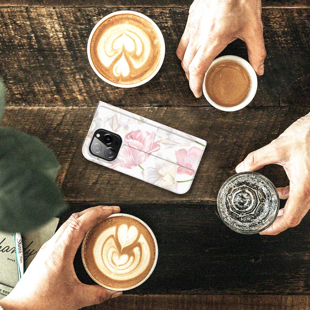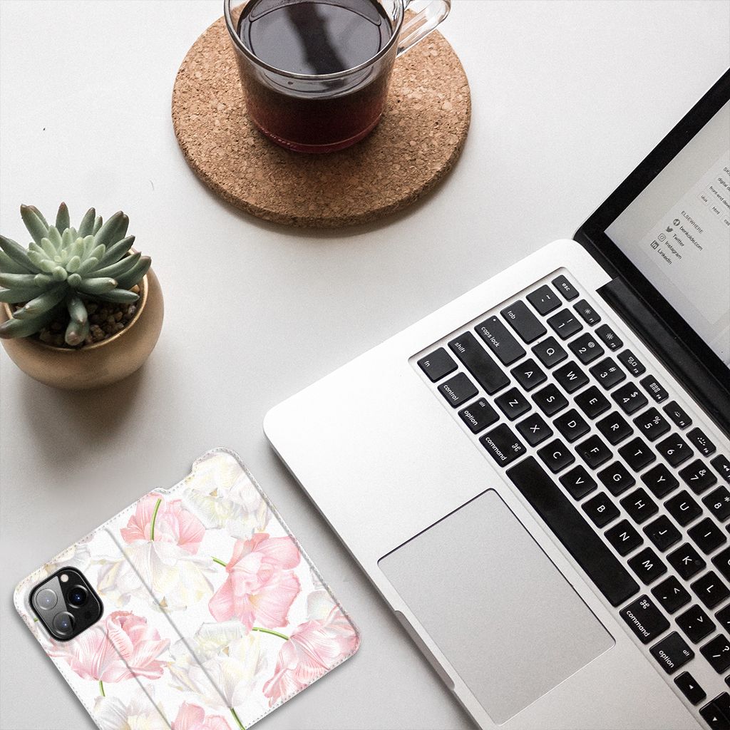 Een bosje bloemen doet een mens (en zijn smartphone) goed. De witte en roze bloemen op dit iPhone 14 Pro Smart Cover geven jouw smartphone een zeer mooie uitstraling. Je wordt er ook meteen een stuk rustiger van als je aan het appen of aan het bellen bent. Valt dan je telefoon op de grond, dan zal er dankzij de stand case met het design Lovely Flowers ontstaan. Onze stand cases met roze en witte bloemen zien er zeer prettig uit en zijn heel praktisch, wat blijkt uit onder meer het vakje aan de binnenkant en de handige standaard waarmee je de smartphone rechtop op tafel neer kunt zetten. De roze en witte bloemen passen goed op alle zijden van de case. Op deze stand case van leer en TPU (houder aan de binnenkant) kun je trouwens ook je eigen bloemige ontwerp zetten. In een paar simpele stappen maak je zelf een stand hoesje met daarop jouw mooiste bloemen.