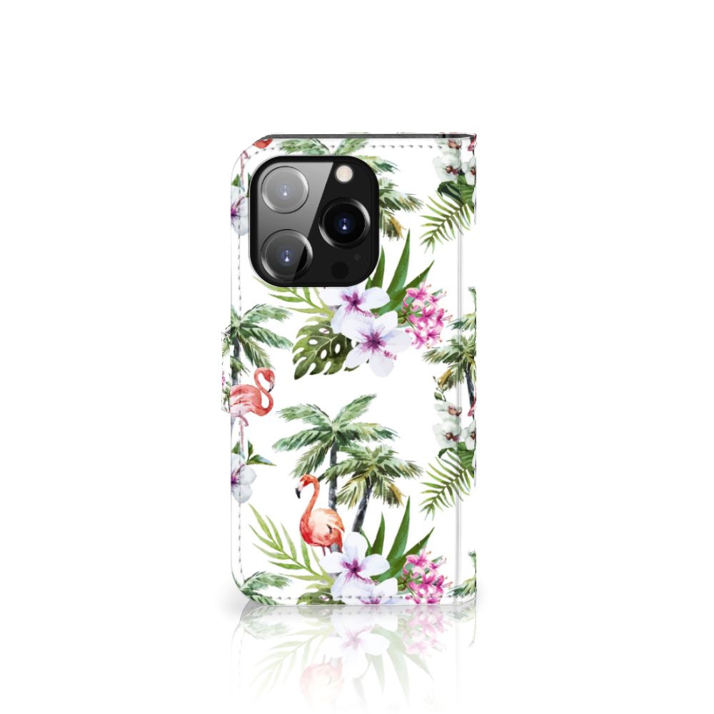 iPhone 14 Pro Telefoonhoesje met ruimte voor 3 pasjes Flamingo Palms