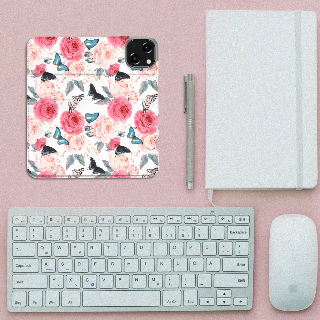 Ben je op zoek naar een uniek telefoonhoesje voor je iPhone 14? Dan ben je bij B2C Telecom aan het juiste adres! Speciaal voor jou hebben we dit prachtige Butterfly Roses design in onze collectie hoesjes opgenomen. Het design wordt bedrukt op een Smart Cover en heeft een vakje aan de binnenkant voor een pasje. Het fijne aan dit hoesje is dat je het als standaard neer kunt zetten. Hierdoor geniet je nog meer als je een filmpje aan het kijken bent op je telefoon. Het hoesje wordt afgesloten door magneten aan de binnenkant. Wil je dit design hoesje nog iets extra's geven? Voeg dan gratis je naam of een quote toe! Is dit design hoesje toch niet helemaal wat je zocht? Ontwerp dan zelf een hoesje in ons ontwerpprogramma.