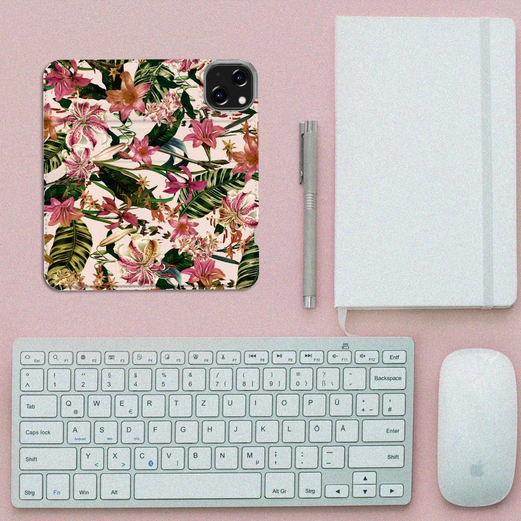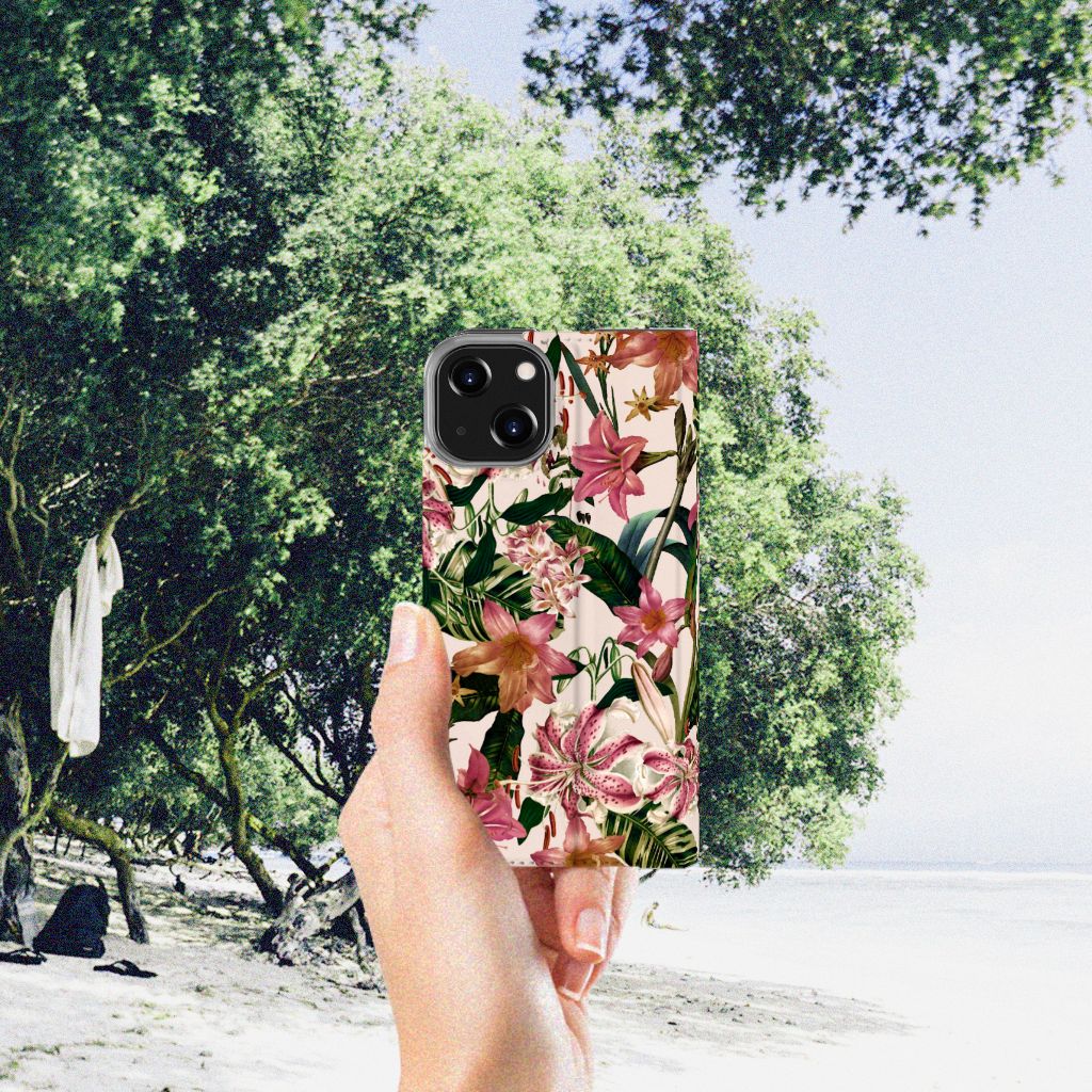 Dit Flowers design is een zegen voor de mens en zijn smartphone. De paarswitte bloemen en groene bladeren op deze iPhone 14 Smart Cover geven jouw smartphone een zeer sierlijke uitstraling. Je krijgt er meteen een goed gevoel bij als je aan het appen, mailen of aan het bellen bent. Valt dan je telefoon op de grond, dan zal er dankzij de stand case met paarswitte bloemen en groene bladeren geen schade ontstaan. Onze stand cases met paarswitte bloemen en groene bladeren bieden de allerbeste bescherming en zijn heel praktisch, wat blijkt uit onder meer het vakje aan de binnenkant en de handige standaard waarmee je de smartphone rechtop op tafel neer kunt zetten. De paarswitte bloemen en groene bladeren komen op alle zijden van de case te staan. Op deze stand case van leer en TPU (houder aan de binnenkant) kun je in no time zelf foto’s van jouw favoriete bloemen zetten.