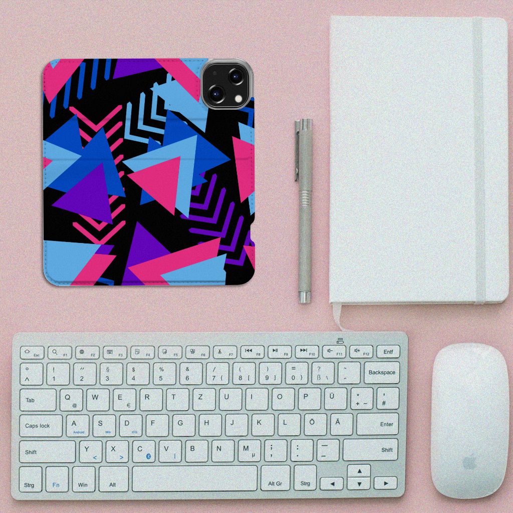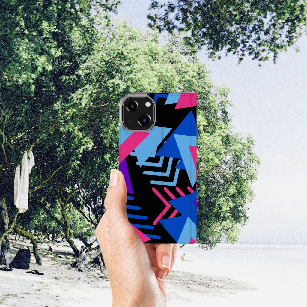 Dit fraaie hoesje met het design Funky Triangle is alles behalve eenvoudig en sober. Dat komt goed uit, want je hebt natuurlijk ook geen doorsnee telefoon gekocht. Mocht je dat wel hebben gedaan, dan wordt hij meteen speciaal als je een iPhone 14 Stand Case koopt voor een spotprijsje. Een ding is zeker: opvallen ga je beslist met dit hoesje met paarse, roze en blauwe driehoeken. Jij zult in je element zijn met dit design hoesje met paarse, roze en blauwe driehoeken, omdat het er schitterend uitziet en jouw telefoon perfect beschermt. Het smartphonehoesje beschermt jouw telefoon aan alle zijden en beschikt over 1 opbergvakje en een speciale standaard. Het hoesje wordt afgesloten met een magneet aan de binnenzijde. De houder aan de binnenzijde is van TPU. Alle zijden van de stand case worden bedrukt. De paarse, roze en blauwe driehoeken maken de case helemaal af.