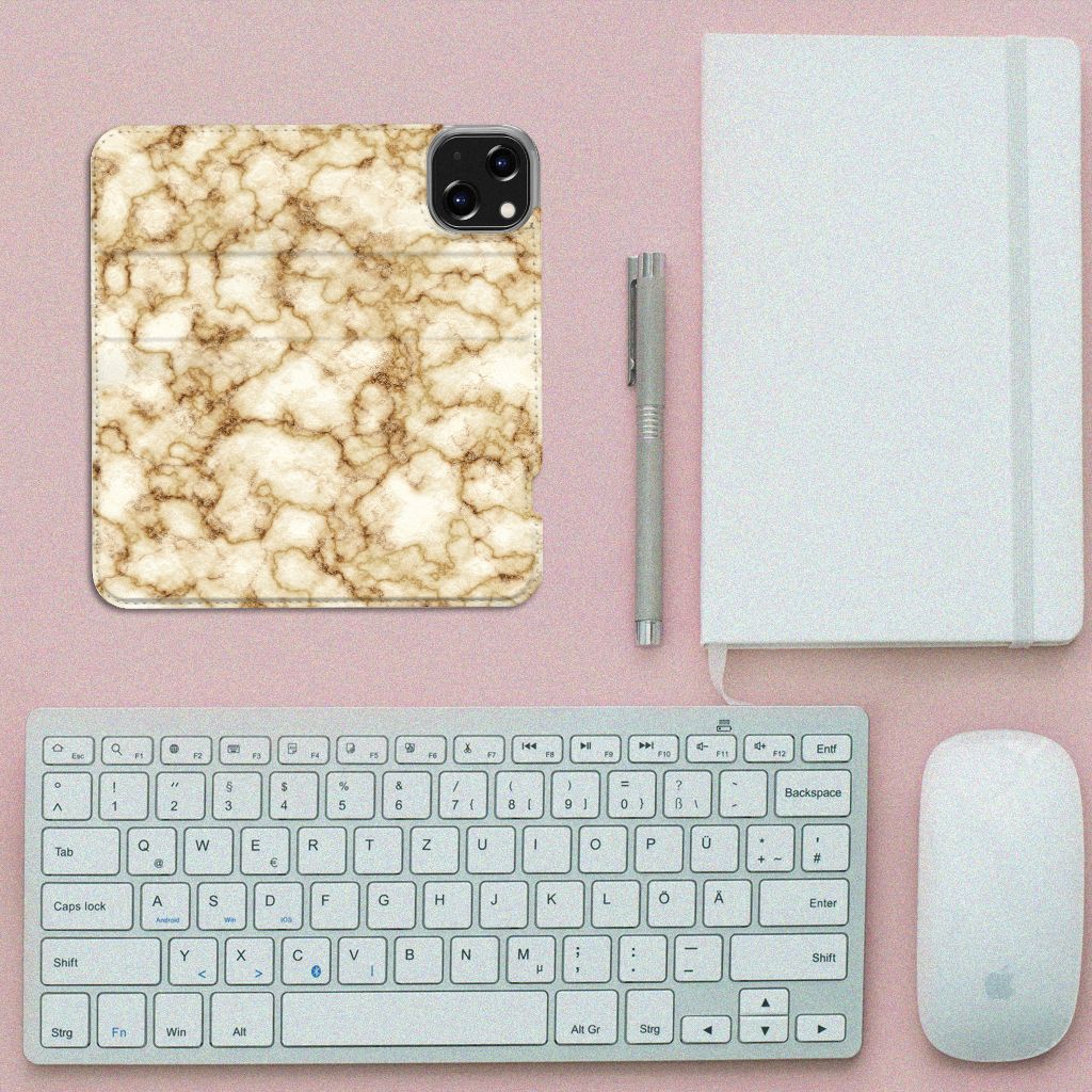 Deze iPhone 14 Standcase met Marmer Goud is het waard om een blokje voor om te rijden. Dit is overigens niet nodig. Als je het hoesje met goud marmer nu bestelt heb je het zeer snel in huis. Je kunt er bij wijze van spreken thuis op gaan zitten wachten. Je hebt diverse soorten marmer. We hebben enkele fraaie kleuren op onze hoesjes gezet, zoals in dit geval het gouden marmer. Het gouden marmer wordt bedrukt op alle zijden van de stand case, die beschikt over een vakje voor pasjes of briefgeld en een magnetische sluiting aan de binnenzijde. Verder heeft de case met goud marmer een houder van TPU. De rijkheid aan kleuren en variaties in afwerking is een schitterende eigenschap van marmer. Dit stand hoesje met goud marmer heeft ook veel schitterende eigenschappen en is de ideale bescherming voor jouw smartphone.