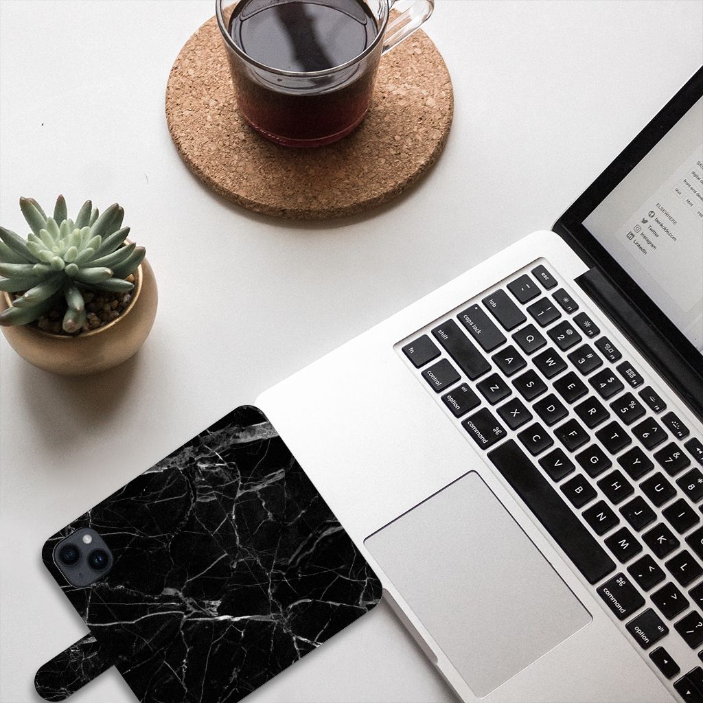 Niet alleen heeft deze bookcase een artistiek design van zwart marmer, het is ook een telefoonhoesje met ruimte voor pasjes. Deze bookcase heeft een strak design en is functioneel. Het voordeel aan een telefoonhoesje met ruimte voor pasjes is dat je al jouw belangrijkste bezittingen op één plek bewaart en dus minder snel kunt kwijt raken. Marmer is een materiaal wat al sinds de Grieken en Romeinen wordt gewaardeerd, het straalt namelijk luxe uit. Bovendien ziet het iPhone 15 hoesje er altijd net wat anders uit door de geaderde belijning die erdoorheen loopt. Hierdoor is jouw Bookcase met pasjes niet alleen mooi, maar ook uniek. Andere iPhone 15 Bookcase met een zwart marmer design zullen er niet precies hetzelfde uitzien, aangezien de grijze belijning op verschillende manieren kan lopen. Als je hem nog verder wilt personaliseren, dan is het mogelijkheid om jouw naam erop te laten drukken in een kleur naar keuze.