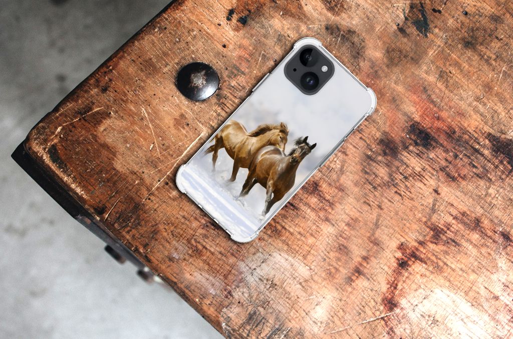 Ben je op zoek naar een uniek telefoonhoesje voor je iPhone 15? Dan ben je bij B2C Telecom aan het juiste adres! Speciaal voor jou hebben we dit prachtige Paarden in onze collectie hoesjes opgenomen. Het design wordt bedrukt op een Case Anti-shock en is gemaakt van flexibel rubber. Het hoesje is perfect voor de actieve smartphonegebruiker door de opstaande randen/hoeken. Denk aan mensen die veel sporten, reizen of wandelen en net iets meer zekerheid willen als het op hun geliefde telefoon aankomt. Het design wordt alleen aan de bovenkant van het hoesje bedrukt en de randen blijven transparant. Aan de zijkanten zijn uitsparingen gemaakt waardoor je met gemak alle knoppen en poorten kunt bedienen. Wij adviseren om dit hoesje in combinatie met een screenprotector te gebruiken voor een langere levensduur van je telefoon. Wil je dit hoesje nog iets extra's geven? Voeg dan gratis je naam of een quote toe! Is dit design hoesje toch niet helemaal wat je zocht? Ontwerp dan zelf een hoesje in ons ontwerpprogramma.