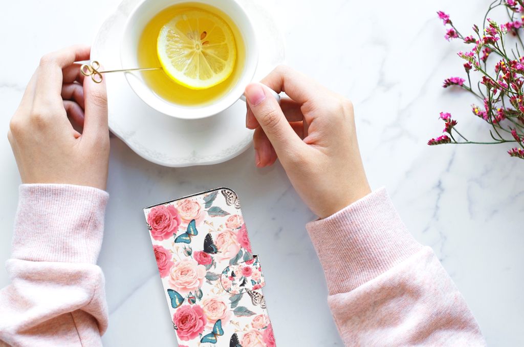 iPhone 15 Hoesje gemaakt van TPU en kunstleer Butterfly Roses