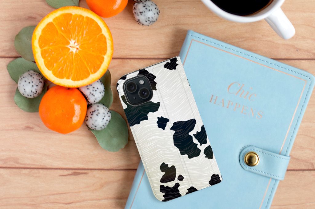 De vlekken op de huid van een koe hebben een camouflage functie. Met deze iPhone 15 Hoesje maken met Koeienvlekken hoef je je geen zorgen te maken dat je smartphone schade oploopt. De koeienvlekken zetten we op een stand case op het moment dat jij je bestelling plaatst. Hierdoor krijgt jouw telefoon een print van koeienvlekken van zeer hoge kwaliteit. We bedrukken jouw gehele stand case met de vlekken van koeien. Je bankpas of creditcard kun je stoppen in het vakje aan de binnenkant van het telefoonhoesje met koeienprint. Roofdieren zijn niet geïnteresseerd in koeien dankzij de vlekken op hun huid. Deze beschermende werking heeft ook jouw hoesje met koeienprint.