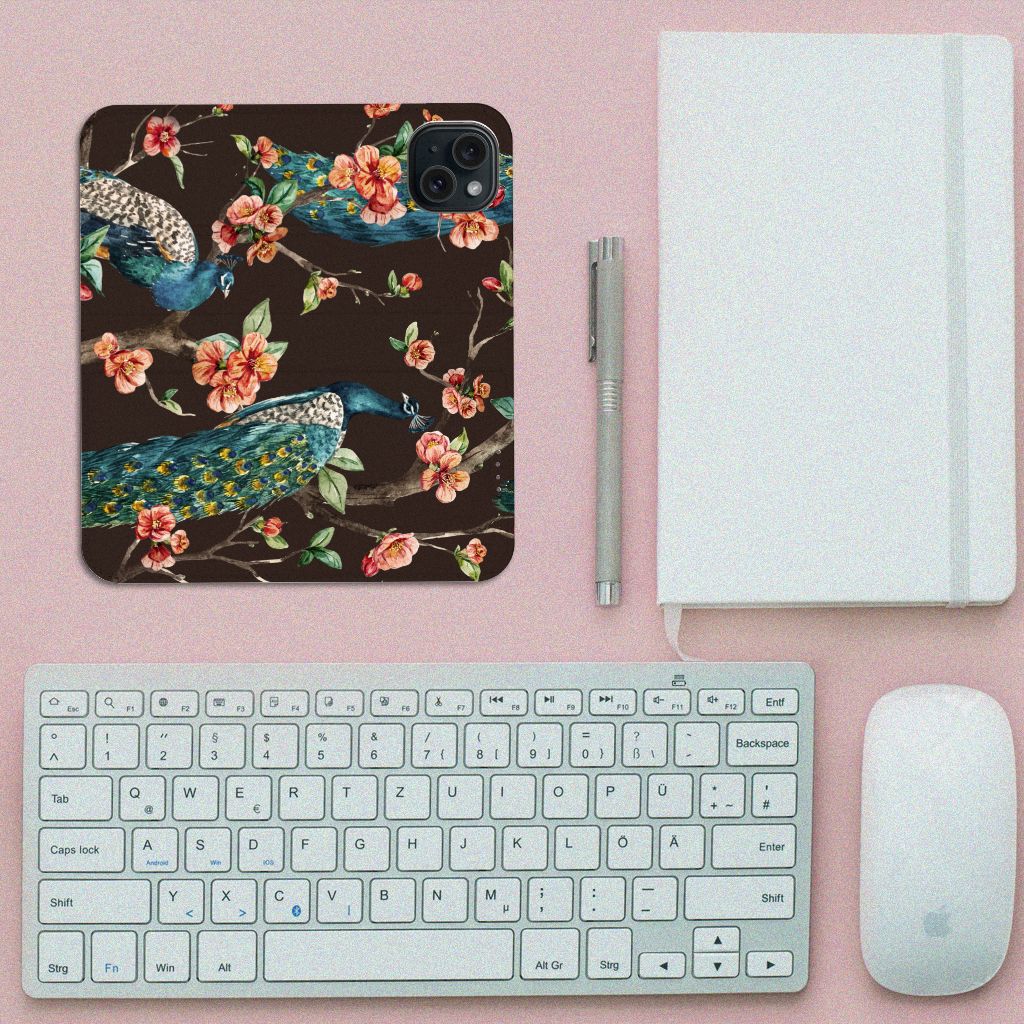 Op deze iPhone 15 Hoesje maken kun jij zo trots als een pauw zijn. Met dit geweldige design hoesje met een Pauw met Bloemen erop kun jij je smartphone voor zeer lange tijd beschermen. Deze stand case is zeer duurzaam en heeft aan de binnenkant een opbergvakje, waarin je een fitnesspas of pinpas kwijt kunt. Met een stand case met fleurige bloemen en trotse pauwen wordt jouw telefoon er een stuk mooier op. De onderscheidend case heeft een houder van TPU en een magneet aan de binnenkant. Zie jij liever jouw eigen huisdier op een telefoonhoesje? Dan adviseren we je zelf een hoesje te ontwerpen met onze unieke Phone Case Designer. We bedrukken alle zijden van de stand case, met duurzame inkt.