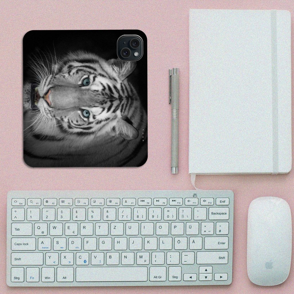 Omdat de Witte Tijger zo bijzonder is, zijn wij bereid deze voor zeer lage kosten op een stand case te zetten. Dit kunnen we zo goedkoop doen omdat we het drukwerk in eigen beheer doen. Witte tijgers leefden lange tijd in de bossen van India, Bangladesh, Nepal, Bhutan en China en kunnen wel 257 kilo wegen. Dit zwaargewicht kunnen we bedrukken op verschillende soorten hoesjes, zoals deze stand cases. Het iPhone 15 Hoesje maken is van PU-leer (buitenzijde) en TPU (binnenzijde) en beschikt over een houder voor pasjes en briefgeld. Verder is dit hoesje met witte tijger print voorzien van magneten aan de binnenzijde. Tegenwoordig zijn witte tijgers alleen in gevangenschap te bewonderen. Jij zorgt voor de perfecte bescherming van je smartphone met dit design hoesje met witte tijger.