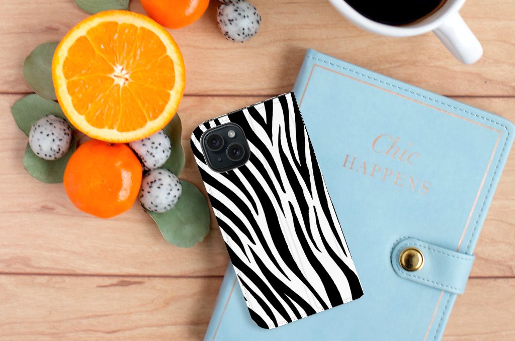 Deze iPhone 15 Hoesje maken met zwart en witte zebra strepen kan exclusief in het bezit van jou komen. Zeker als je er zelf nog unieke teksten en/of beelden aan toevoegt van jezelf. Je hoesje krijgt dan een eigen identiteit, net zoals de witte en zwarte strepen uniek zijn bij iedere Zebra. Deze zijn te vergelijken met de vingerafdrukken bij de mens. De strepen en patronen zijn nooit identiek aan die van een andere zebra. Ben jij toe aan een unieke stand case? Pak dan dit design met zebra strepen als basis. Het stand hoesje is van PU-leer (buitenzijde) en TPU (binnenzijde) en beschikt over een houder voor pasjes en briefgeld. Verder is dit hoesje met zebra print voorzien van magneten aan de binnenzijde. Een zebra gebruikt de strepen ook om zich te camoufleren in de omgeving om zo uit het zicht te blijven van de roofdieren. Jij zorgt voor de perfecte bescherming van je smartphone met dit design hoesje in zebra kleuren.