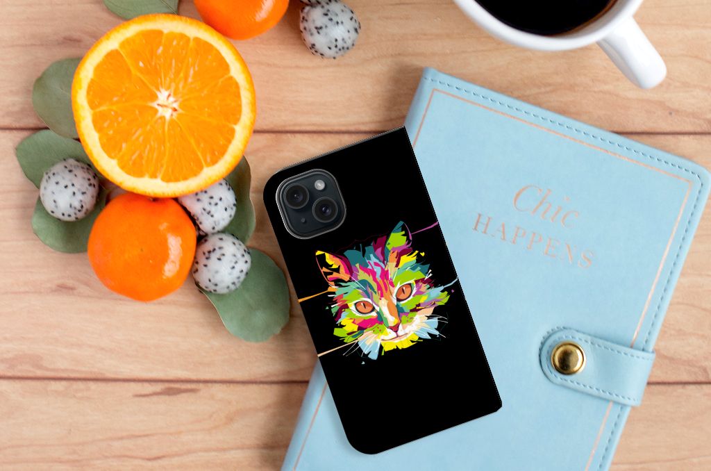Ben je op zoek naar een uniek telefoonhoesje voor je iPhone 15? Dan ben je bij B2C Telecom aan het juiste adres! Speciaal voor jou hebben we dit prachtige Cat Color design in onze collectie hoesjes opgenomen. Het design wordt bedrukt op een Magnet Case en heeft een vakje aan de binnenkant voor een pasje. Het fijne aan dit hoesje is dat je het als standaard neer kunt zetten. Hierdoor geniet je nog meer als je een filmpje aan het kijken bent op je telefoon. Het hoesje wordt afgesloten door magneten aan de binnenkant. Wil je dit design hoesje nog iets extra's geven? Voeg dan gratis je naam of een quote toe! Is dit design hoesje toch niet helemaal wat je zocht? Ontwerp dan zelf een hoesje in ons ontwerpprogramma.