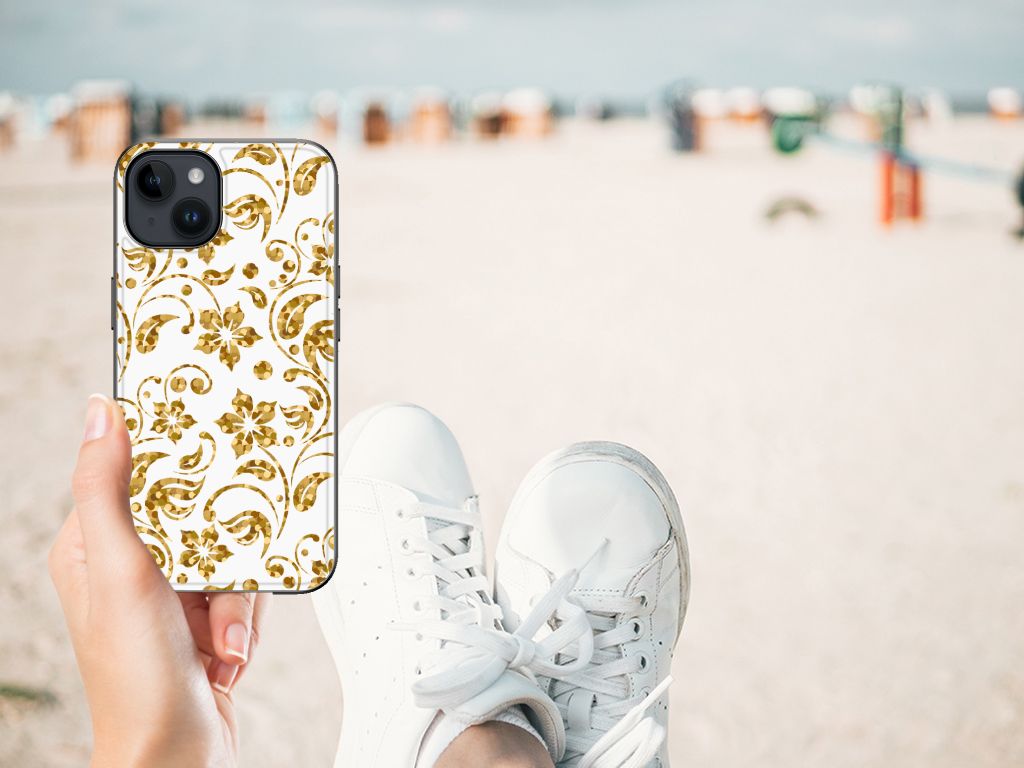 iPhone 15 Plus Bloemen Hoesje Gouden Bloemen