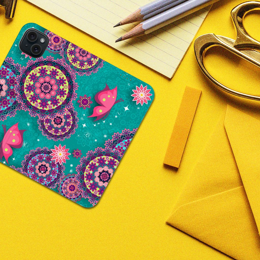 Deze opvallende iPhone 15 Plus Bookcase met Cirkels en Vlinders is een ware eyecatcher. De meeste vlinders hebben een onopvallende vleugelkleur en dat kun je van de soort op dit hoesje ook zeker wel zeggen. Wij kunnen deze opvallende vlinders en cirkels op een zeer handige stand case zetten. Deze hoesjes zijn zeer gewild. Met onze geavanceerde printer zetten we de print van opvallende vlinders en cirkels op alle zijden van het hoesje. De case met vlinders heeft aan de binnenkant een houder waarin je jouw creditcard of ander pasje kwijt kunt. De case heeft bovendien een handige standaard. Verder is je telefoon natuurlijk maximaal beschermd met deze stand case met print van opvallende en kleurrijke vlinders. De houder aan de binnenzijde van het design hoesje met opvallende vlinder print is van TPU.