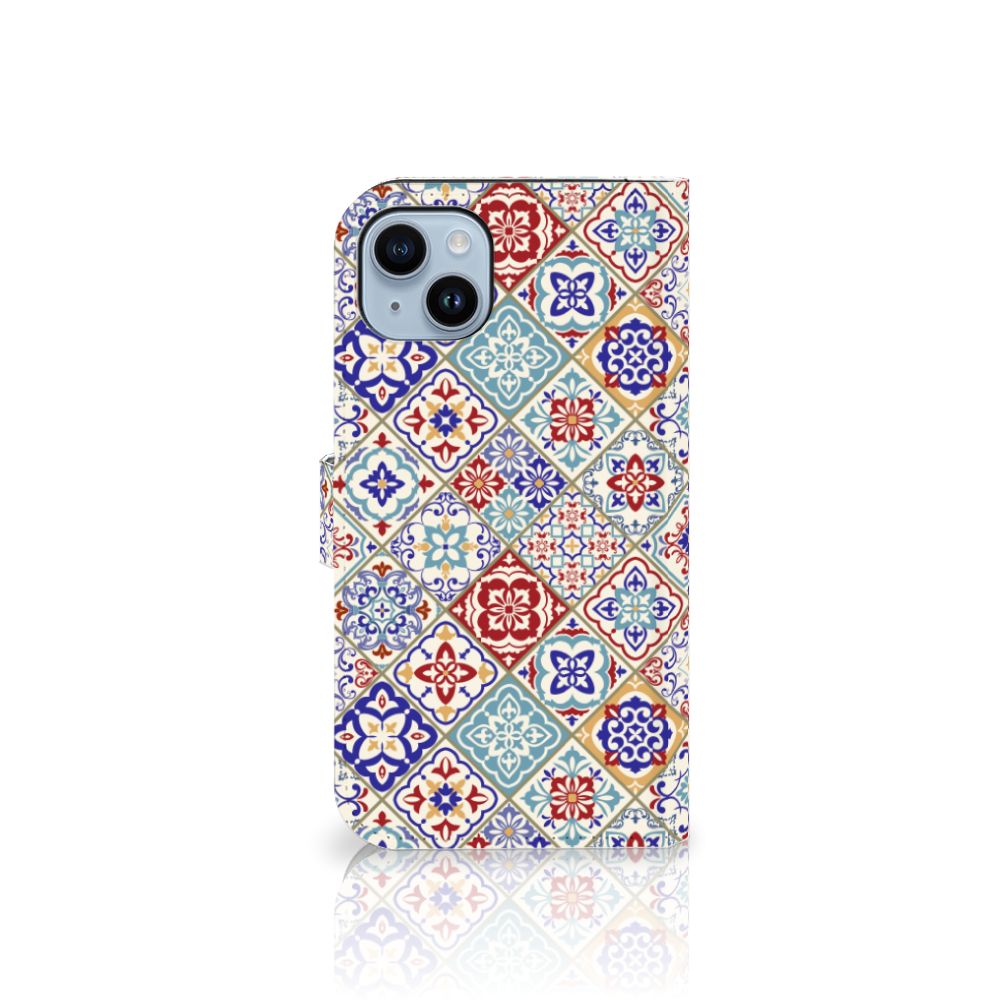 iPhone 15 Plus Bookcase met ruimte voor 3 pasjes Tiles Color