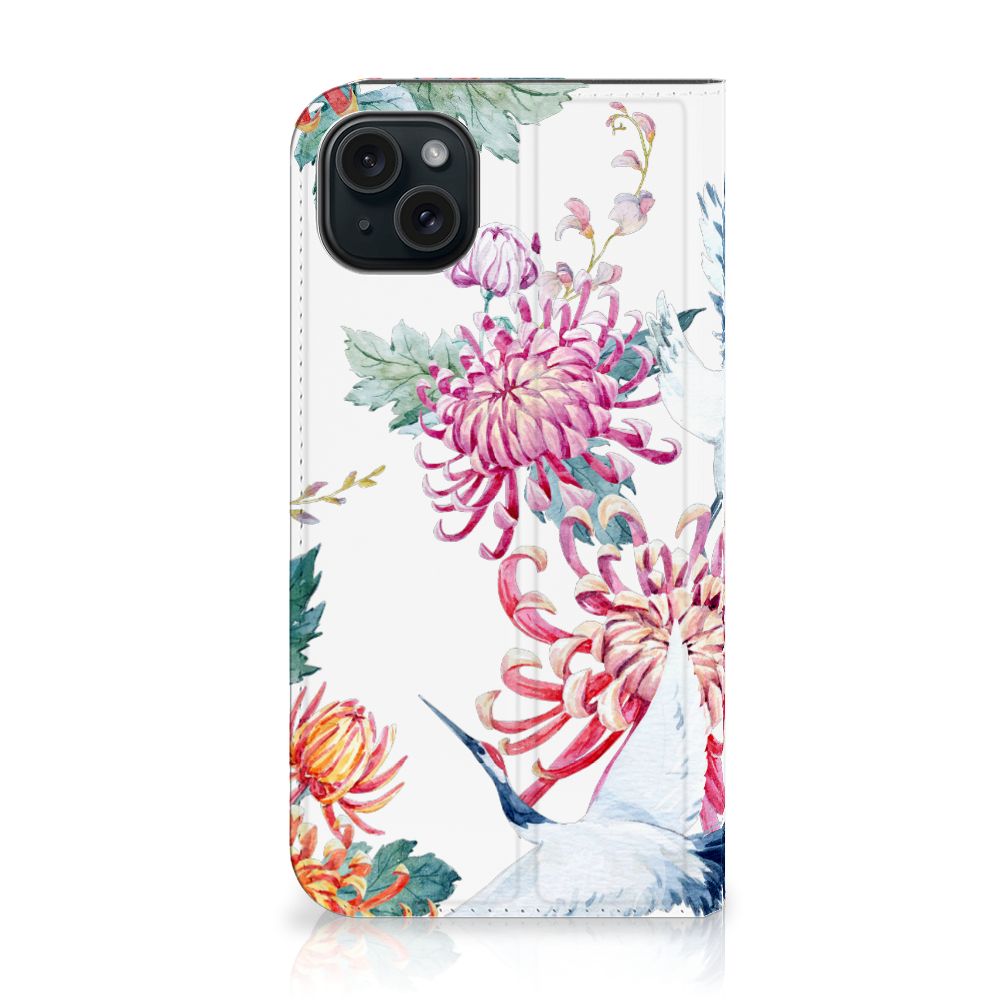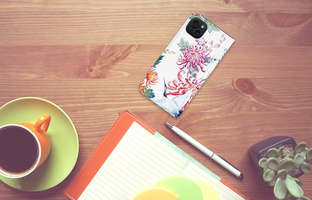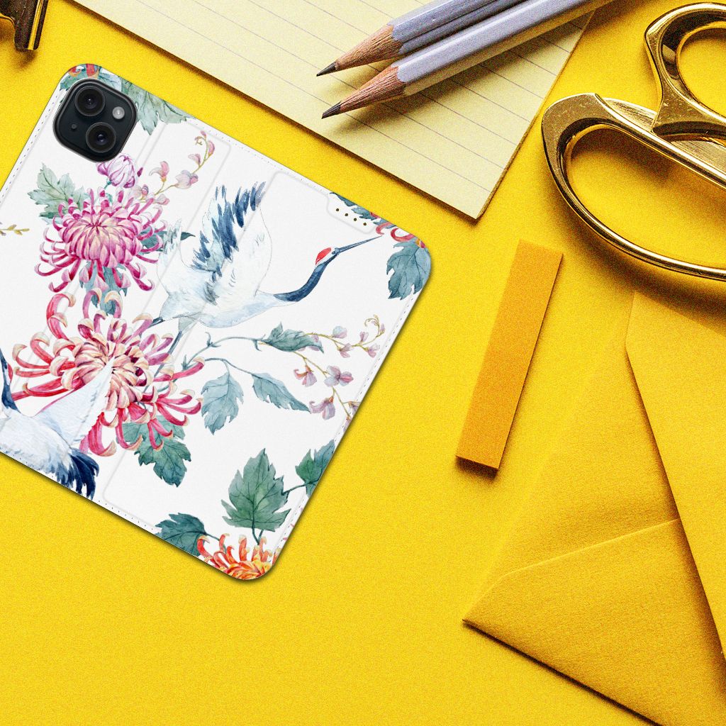 Verspreid over de hele wereld leven 19 soorten ooievaars. De spanwijdte – dat is de afstand van vleugeltip tot vleugeltip – van een volwassen ooievaar kan 2.50 meter bedragen. De gebieden waarin de ooievaar broedt, liggen in heel Europa, het Midden-Oosten, West- en Centraal-Azië en Noordwest-Afrika. Het ideale leefgebied van de ooievaar is een half open tot open landschap met veel afwisseling in grondgebruik en begroeiing. De begroeiing op dit design hoesje, in allerlei verschillende kleuren, zal niet alleen voor de ooievaars fraai zijn. Jij zult er zelf ook heel vrolijk van worden. Het in het oog springende design staat op een Hoesje maken. Deze case beschermt jouw iPhone 15 Plus aan alle kanten en beschikt over een 1 opbergvakje en een speciale standaard. Het hoesje wordt afgesloten met een magneet aan de binnenzijde. De houder aan de binnenzijde is van TPU. Alle zijden van de stand case worden bedrukt.