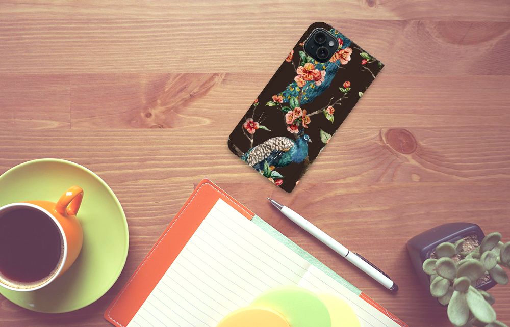 Op deze iPhone 15 Plus Hoesje maken kun jij zo trots als een pauw zijn. Met dit geweldige design hoesje met een Pauw met Bloemen erop kun jij je smartphone voor zeer lange tijd beschermen. Deze stand case is zeer duurzaam en heeft aan de binnenkant een opbergvakje, waarin je een fitnesspas of pinpas kwijt kunt. Met een stand case met fleurige bloemen en trotse pauwen wordt jouw telefoon er een stuk mooier op. De onderscheidend case heeft een houder van TPU en een magneet aan de binnenkant. Zie jij liever jouw eigen huisdier op een telefoonhoesje? Dan adviseren we je zelf een hoesje te ontwerpen met onze unieke Phone Case Designer. We bedrukken alle zijden van de stand case, met duurzame inkt.
