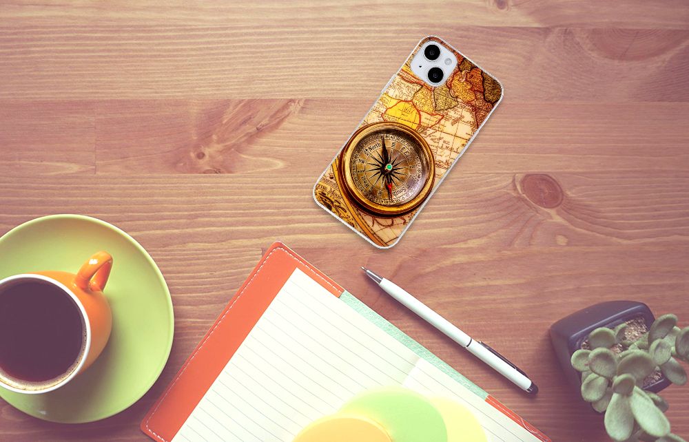 Met deze iPhone 15 Plus Siliconen Back Cover met opdruk van een Kompas kun jij veilig elke richting op die je wilt, zonder dat je smartphone schade oploopt. Erg handig. Een kompas werkt overigens met magnetisme. Dat betekent dat een kompas af gaat wijken als die te dicht in de buurt van metaal of een andere magnetische bron komt. Deze tpu case met kompas heeft geen magneet omdat alleen de achterkant en zijkanten maximaal worden beschermd. Onze tpu cases met het beeld van een kompas bieden zeer goede bescherming en zijn heel praktisch, wat blijkt uit onder meer uit de flexibiliteit. Het kompas komt op de bovenkant van de case te staan, de zijkanten blijven transparant. Op deze tpu case kun je trouwens ook in no time zelf foto’s en teksten zetten. Ontwerp bijvoorbeeld eens een hoesje met je eigen vakantiefoto’s.