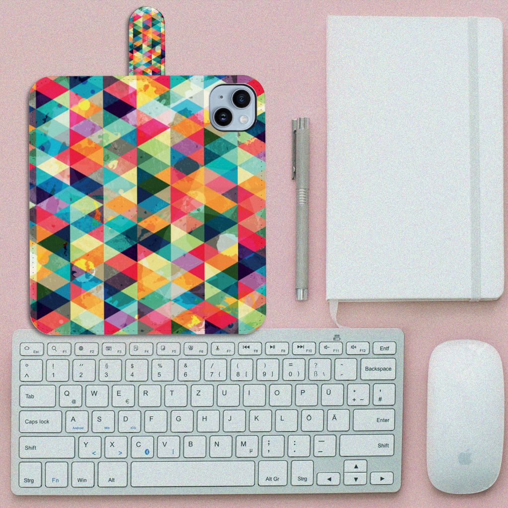 Dit design hoesje bestaat uit ruitjes in alle kleuren van de regenboog, wat inderdaad een beetje druk is, en waar je echt een liefhebber van moet zijn. Feit is dat dit hoesje zeker opvalt en als je daarvan houdt, is dit het perfecte Telefoon Hoesje voor jou! Daarnaast is dit iPhone 15 Plus hoesje een bookcase, wat inhoudt dat jouw telefoon aan alle zijdes beschermd is. En deze bookcase is ook nog eens aan alle kanten bedrukt, zodat het wel mooi blijft, zelfs het lipje van het hoesje is bedrukt met het ruitjes patroon. De buitenkant van dit designhoesje is gemaakt van PU-leer. De binnenkant daarentegen is gemaakt van TPU wat de telefoon goed beschermt in het geval dat hij op de grond zou vallen. Ook kun je jouw pasjes allemaal kwijt in dit hoesje zodat jij al jouw belangrijke bezittingen bij de hand hebt.